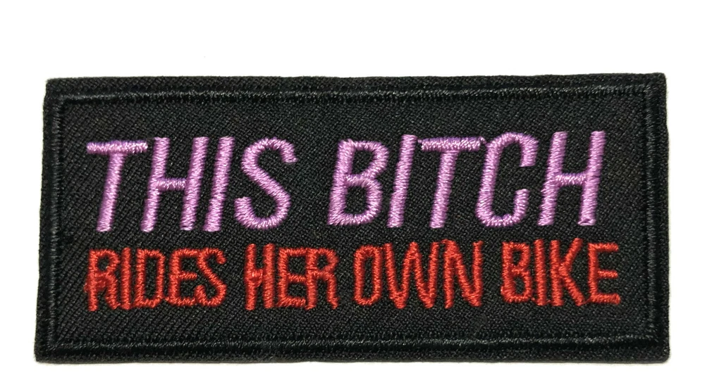 This Bitch Rides Her Own Bike 4" W x 2" T Patch Embroidered Iron-on Applique