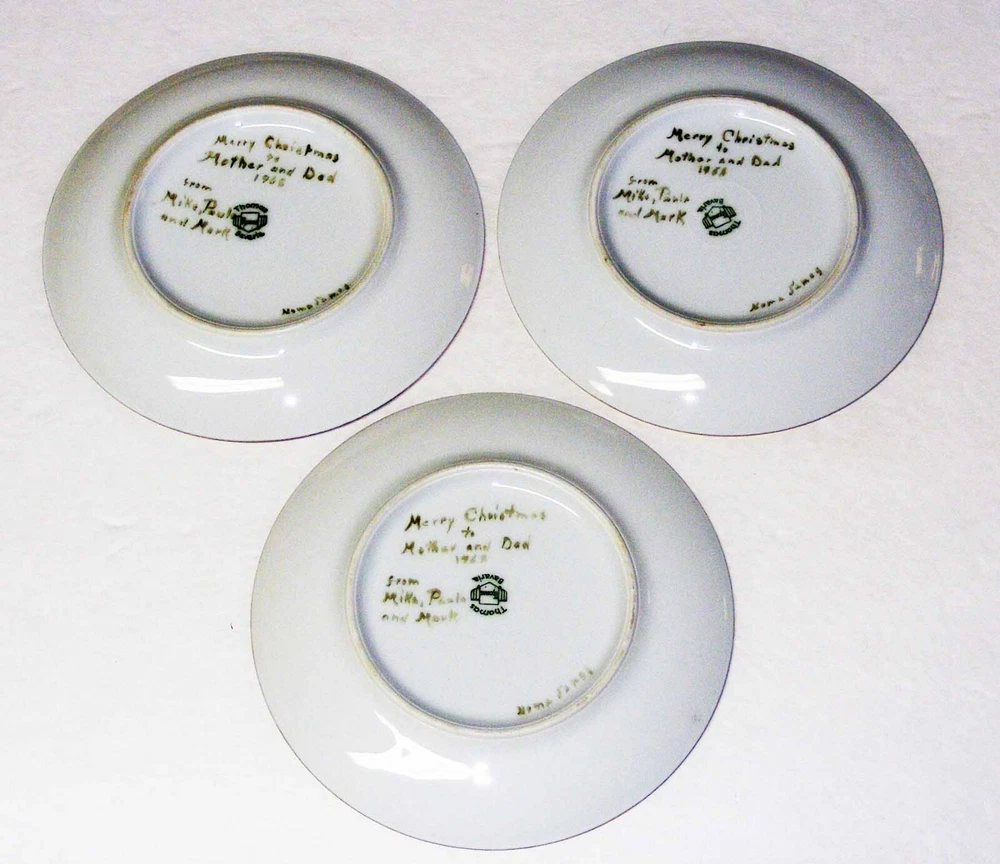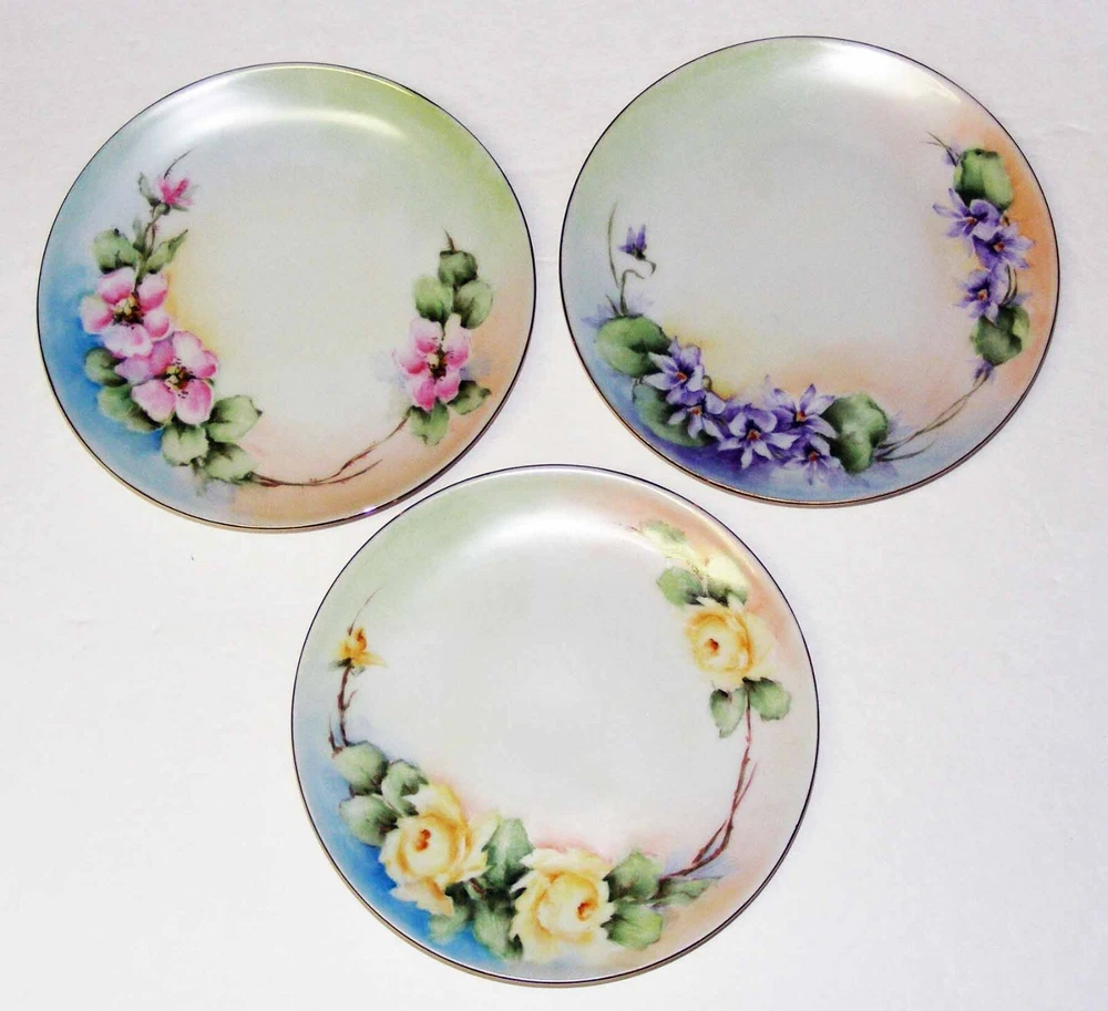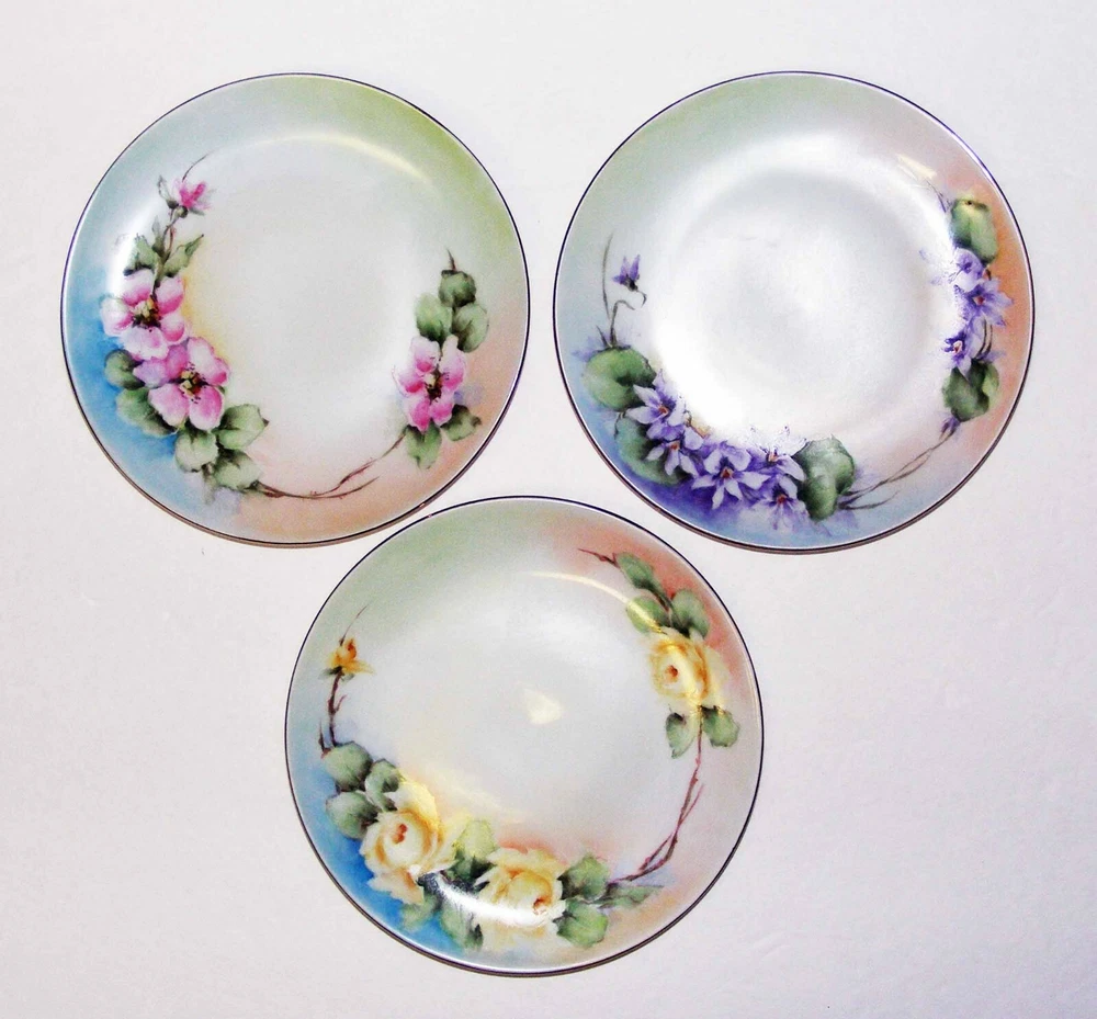 Thomas Bavaria Set of 3 plates about 6" in diameter. Different floral design on each (photo). Gift note written on back of each plate. No breaks. VGC 5e2