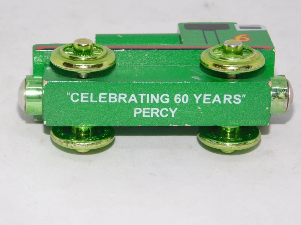 IN THIS AUCT ION I HAVE A Thomas & Friends Wooden Railway 60-year Edition 2003 PERCY GREEN #1 WHAT YOU SEE IS WHAT YOU GET. PLEASE CHECK PICS AS THE PICTURES ARE YOUR DESCRIPTION AS WELL. PLEASE CHECK OUT MY OTHER AUCTIONS FOR OTHER HARD TO FIND ITEMS HIGH BIDDER PAYS $4.99 SHIPPING. I DO COMBINE SHIPPING. ANY ITEMS BOUGHT OVER THE WEEKEND GETS SHIPPED BETWEEN MONDAY-TUESDAY!