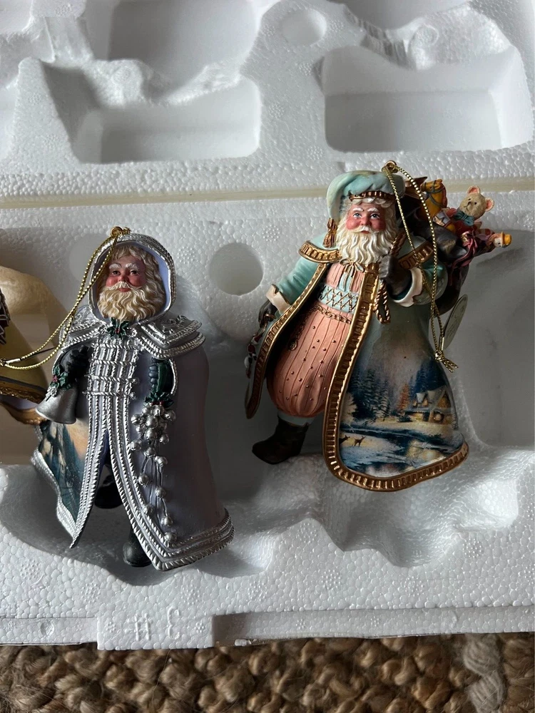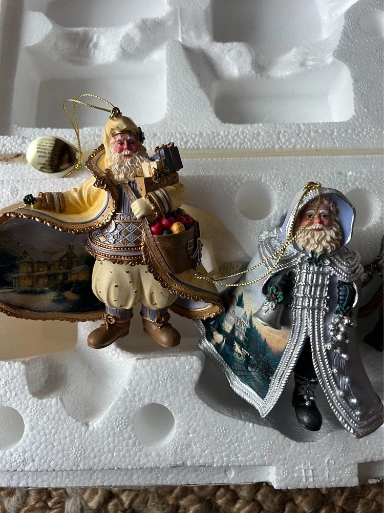 Set of three Thomas Kinkade Old World Santa ornaments. Set #2. Includes packaging.