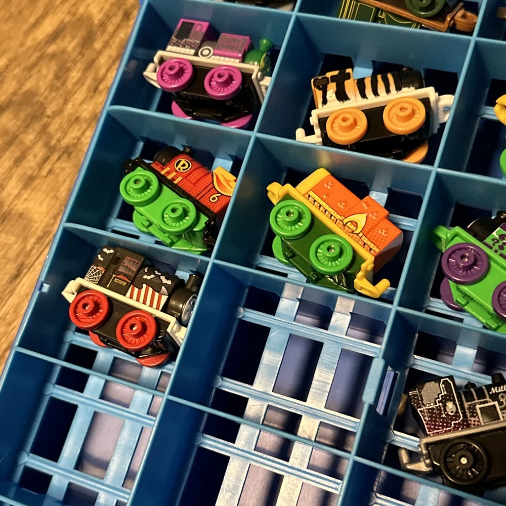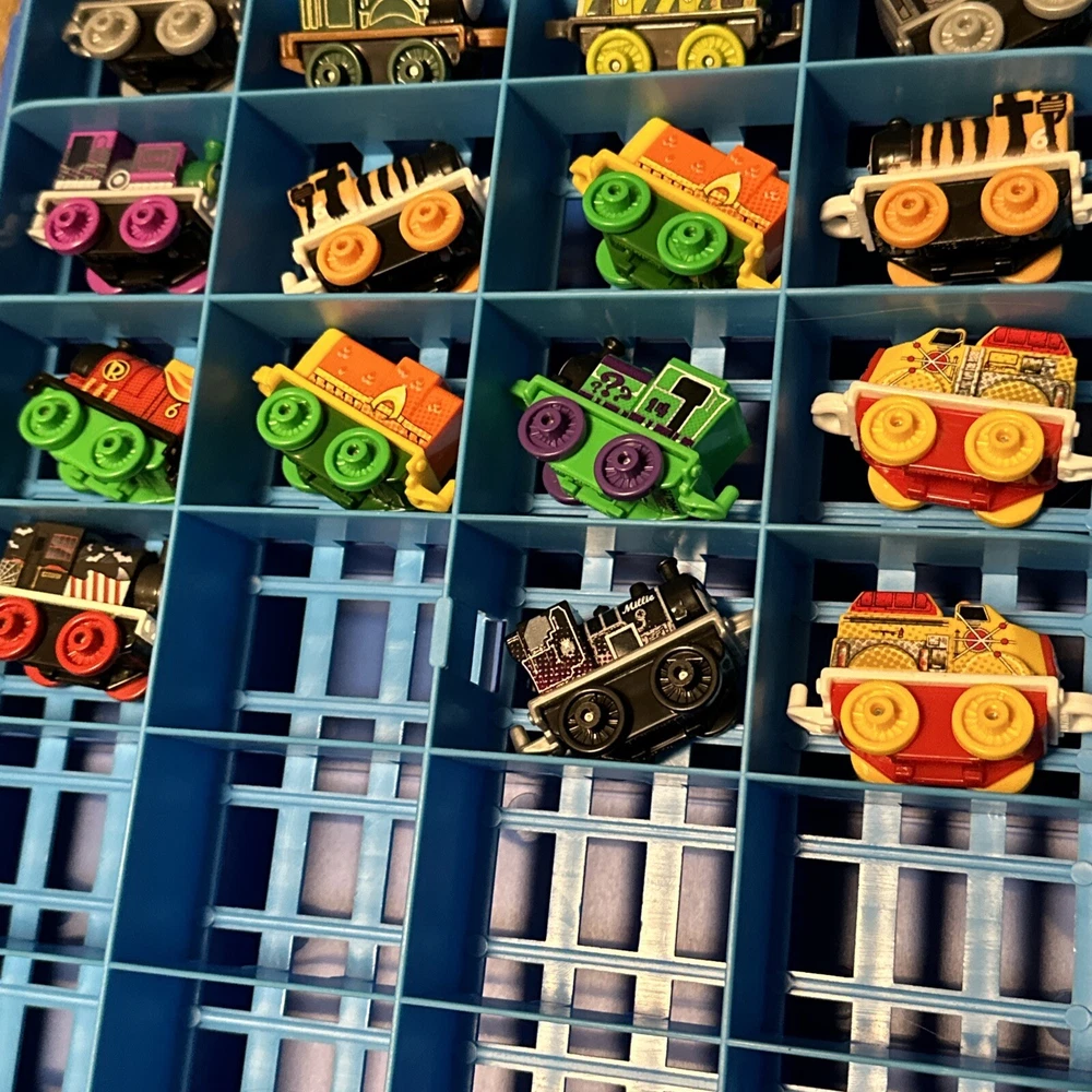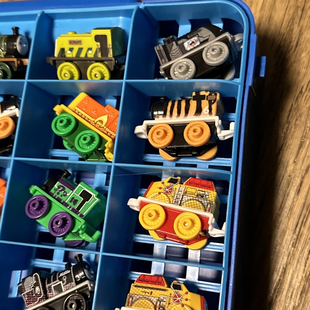 This lot includes 15 mini trains from the Thomas & Friends franchise, along with a carrying case. These action figures are perfect for collectors or children who love to play with toy trains. The brand is known for its high-quality toys and attention to detail, making this lot a great addition to any collection. The vehicles are all in great shape and ready for display or play. Don't miss out on the chance to own these charming mini trains and their carrying case.