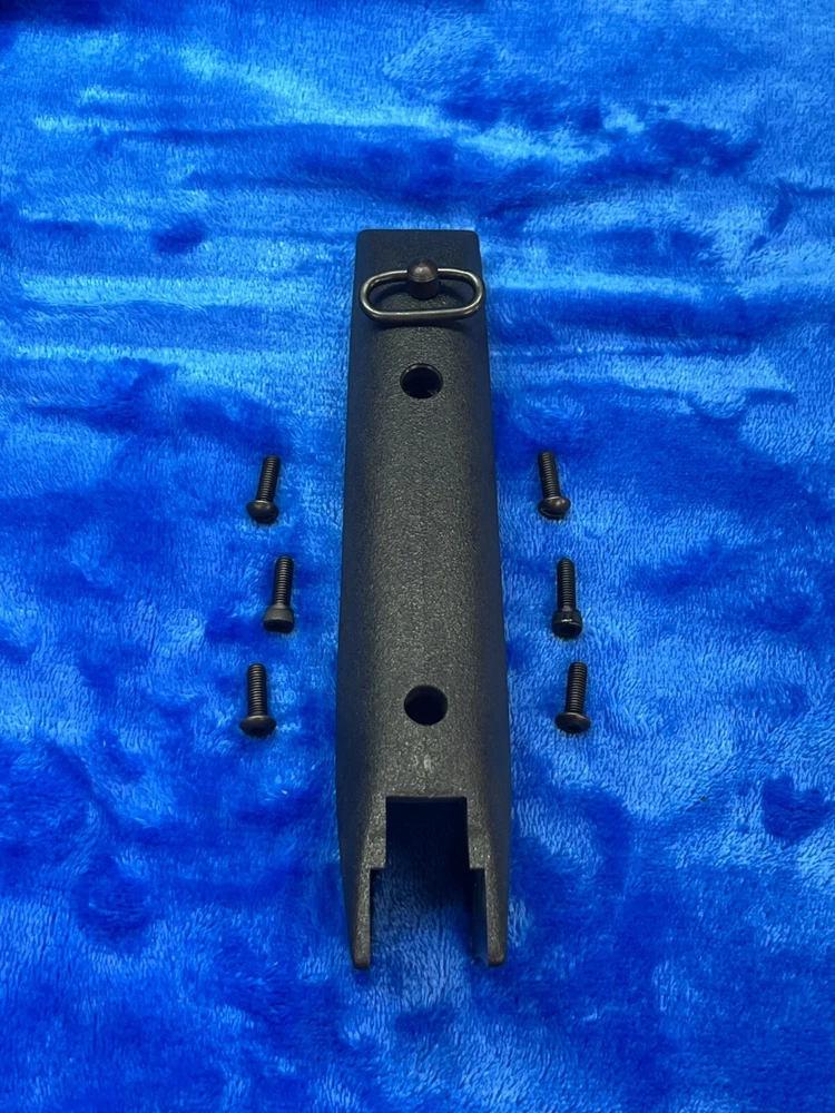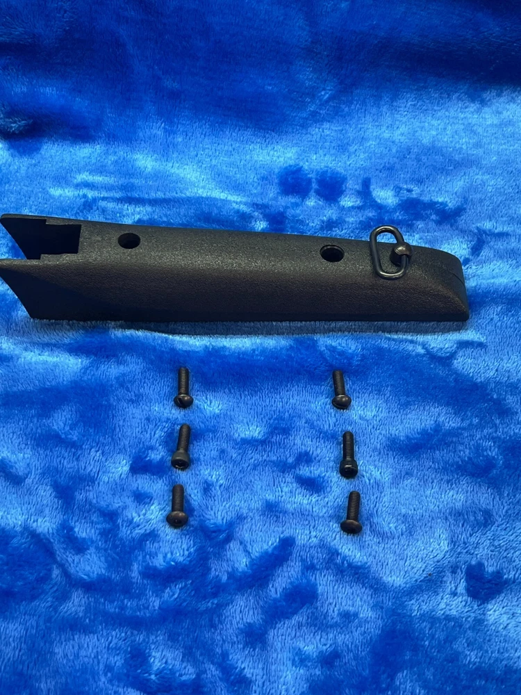 Carbine Forend with Sling Attachment Enhance your Thompson Center Carbine with this composite forend grip. This durable grip is made from polymer material and measures 8.25 inches in length. It comes with a sling attachment, ensuring a more comfortable and hassle-free hunting experience. This forend grip is suitable for carbine types and is available in black color. It is "new" old stock, with your choice of various type of Black Oxide fasteners included. The grip is made in the United States, and it is a part of the hunting and sporting goods categories. Get your hands on this high-quality forend grip for your Thompson Center Carbine today!