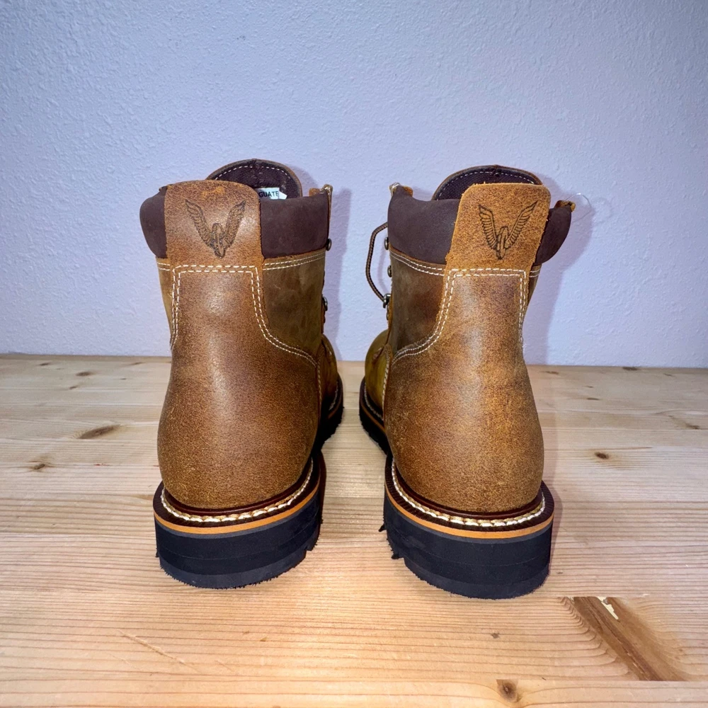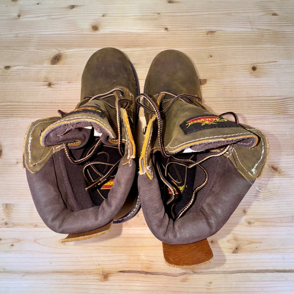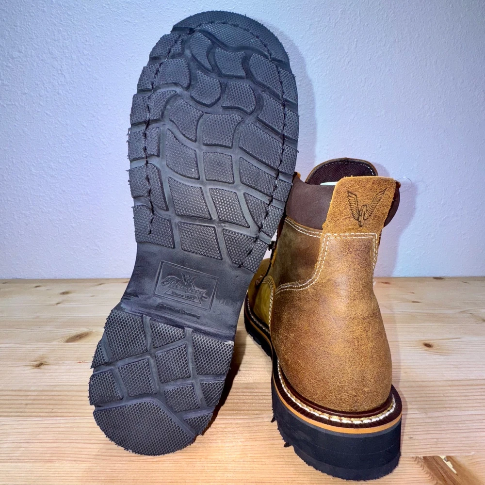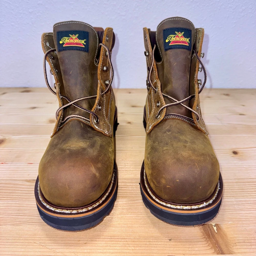Brand new without tags, never worn. These Thorogood 804-4144 work boots are built for maximum safety and durability. Made with oil-tanned brown leather, steel toe protection, and waterproof construction, they're ASTM F2413-18 & F3445-21 rated for EH and slip resistance. Goodyear storm welt design ensures long-lasting performance. Men's size 9D, made in Guatemala, weighing approx. 4.1 lbs. Ideal for construction, industrial, and outdoor environments. • Brand: Thorogood • Style: 804-4144 Waterproof Steel Toe Work Boots • Color: Brown / Oil-Tanned Leather • Size: 9D (Men's) • Material: Leather Upper, Rubber Outsole • Made in: Guatemala • Weight: 4.1 lbs Condition: Brand New Without Tags – Never Worn Keywords: thorogood boots, steel toe work boots, waterproof work boots, EH SR ASTM boots, mens size 9D