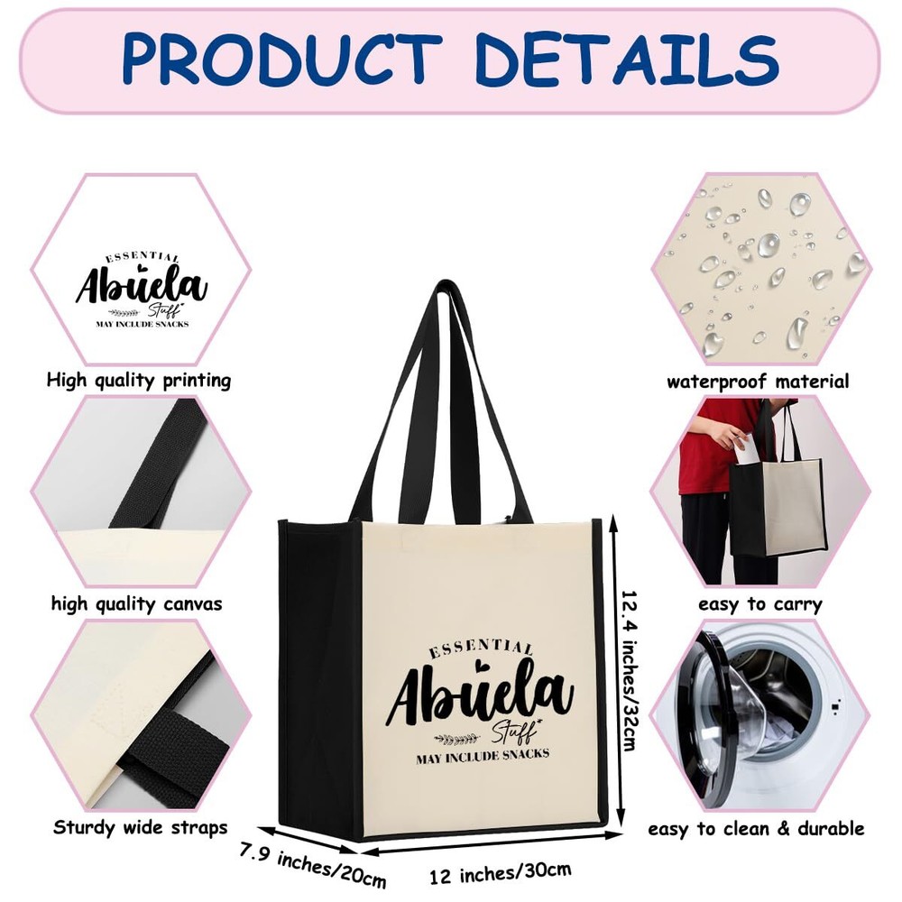 Welcome to Our Store! Quality Products, Satisfaction is what we guarantee. Grandma Gifts Abuela Gifts Birthday Gifts for Grandma Retirement Grandmothers Day Gifts for Grandma Nanny Granny Yaya Women Funny Waterproof Tote Bag Beach Bag Reusable Grocery Bags Grandmother Gifts Product Images Product Details Description Our tote bag is thoughtful gifts for female, soul sister, bridesmaid, bride, coworkers, niece, cousin, with ample capacity to accommodate your daily necessities. They are the perfect partner for daily activities, camping, travel, shopping, work, and queuing. It is also very suitable as a gift for birthdays, Christmas, Thanksgiving, Mother's Day, retirement, wedding anniversaries, etc. Key Features Dimension: The size of this tote bag is 12.6 x 11.8 x 7.9 inches, which is large enough to hold many daily accessories, such as clothes, sunglasses, perfume, makeup brushes, water bottles, cosmetics, wallets, mobile phones, keys, etc. And The handle is long enough and strong enough that it can be carried around or slung over the shoulder. Waterproof Materials: Our beach bag is made of high-quality canvas material, it has a waterproof coating on the inside to protect your belongings. The canvas bag is portable, durable, and easy to clean. The retro and fashionable design keeps you up with the fashion trend, making it an excellent partner for women. Multiple uses: This cotton tote bag is can also be used as a beach bag, travel bag, grocery bag, day care bag, fitness bag, yoga bag, shopping storage bag, shoulder Bag, utility tote bag, diaper bag, and so on. Perfect for beach parties, camping, travel, trips, vacations, shopping, picnic, birthdays, work. Perfect Match: This reusable grocery bags is very versatile and can be paired with T-shirts, shirts, shorts, skirts, dresses, windbreakers, jeans, vests, sneakers, sandals, and more. The simple adds a touch of personal charm for women. Ideal Gift: Our shopping bag is specially designed for women, sisters, friends, mom, coworker. This is the ultimate expression of love. It is also a perfect Mother's Day, birthday, retirement, appreciation, bridal shower, bachelor party, Thanksgiving, Christmas gift. We appreciate your business! Contact Us 📧 If you have any questions, feel free to reach out via the eBay messaging system. We respond to all inquiries within 24 hours. Payment Information 💳 We accept PayPal, credit cards, and other payment methods supported by eBay. Please ensure your payment information is current to avoid delays. Shipping Information We ship to the address on your eBay account. Please confirm your address before completing the purchase. Delivery times are typically 3-5 business days. If there are delays, please allow an extra 1-2 business days due to postal service issues or technical problems. We use trusted shipping services like UPS, FedEx, and USPS. Shipping is available to the contiguous 48 states only. We do not ship to Alaska, Hawaii, US territories, APO/FPO addresses, or PO Boxes. Local pickups are not available. For any issues with delivery, please contact us promptly. Feedback 🌟 We value your feedback and strive to earn your trust. If you're not satisfied with your purchase, please contact us and we'll work to resolve the issue. Return Policy - We offer a 30-day money-back guarantee. - If the item is defective or you are not satisfied, contact us for a replacement or refund. - All returns must be sent to the address provided upon contacting us.