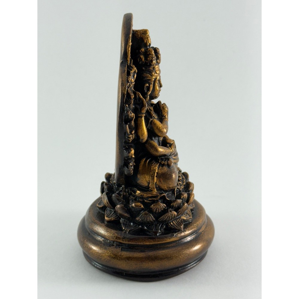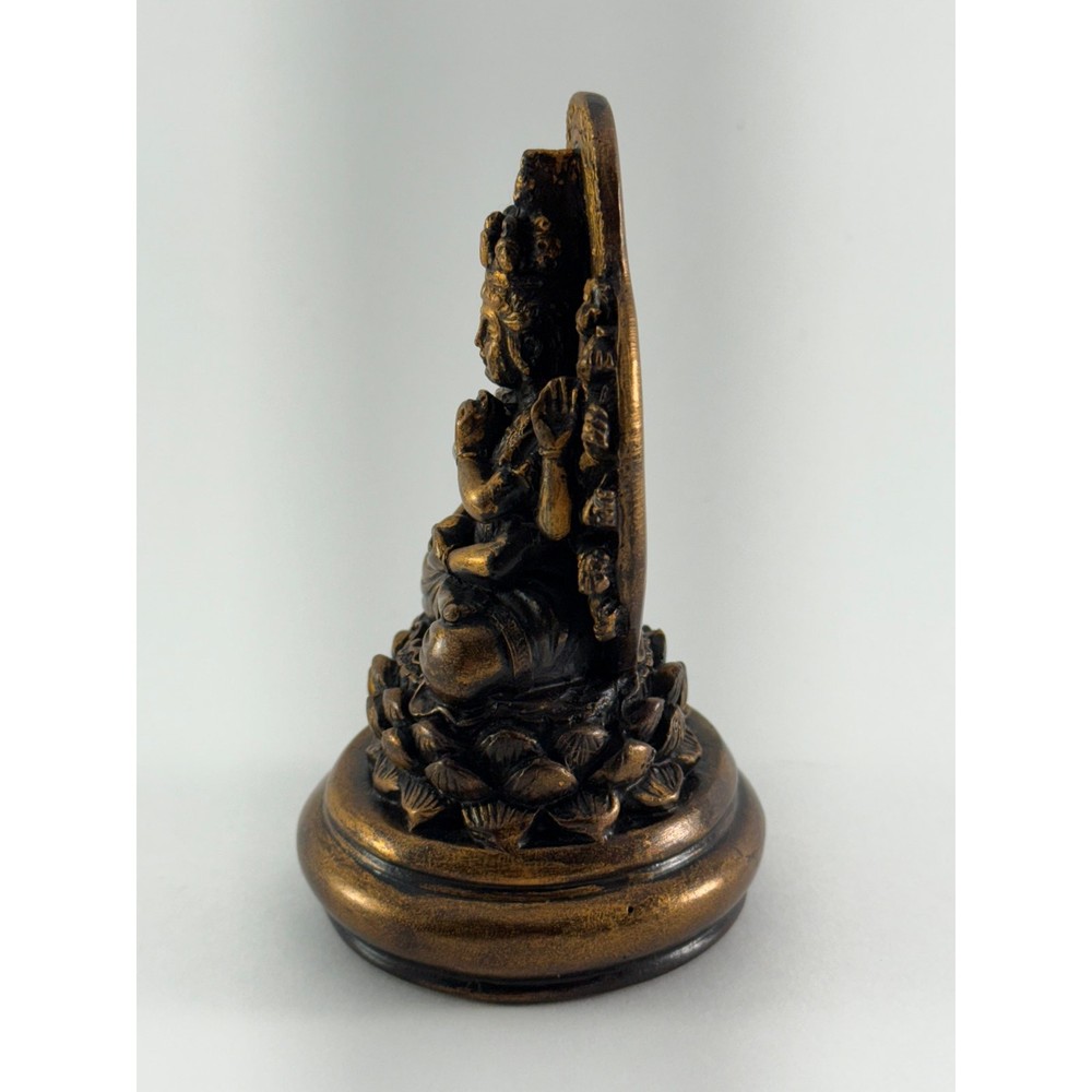 Size: 4.5" Bronze/Black Resin Thousand Armed Kwan-Yin The Bodhisattva of Compassion is here shown with many arms with which to help beings in need, and with multiple heads which can see in all directions in order to identify need and provide help. Avalokiteshwara Kanzeon Kwan Yin Quan Yin