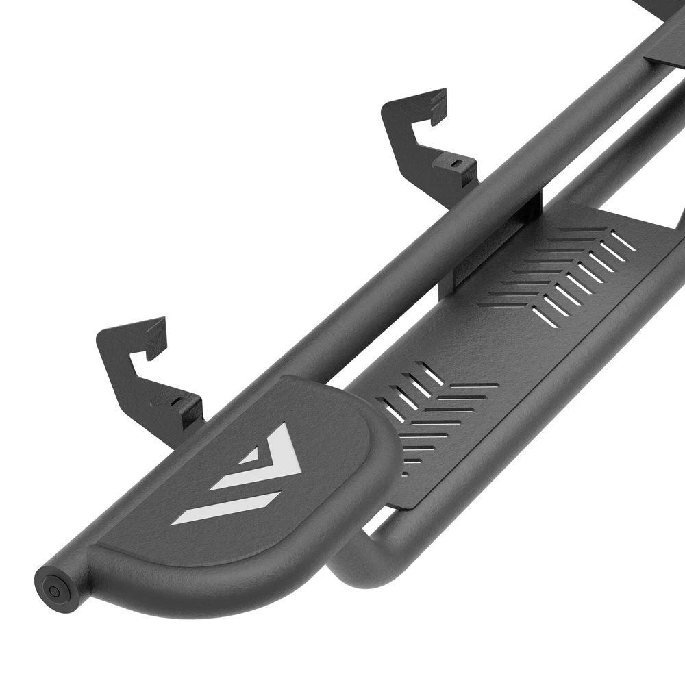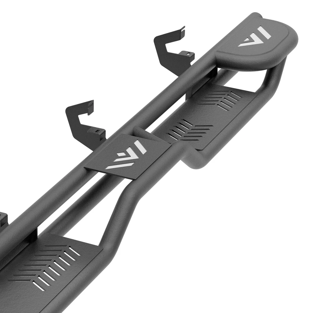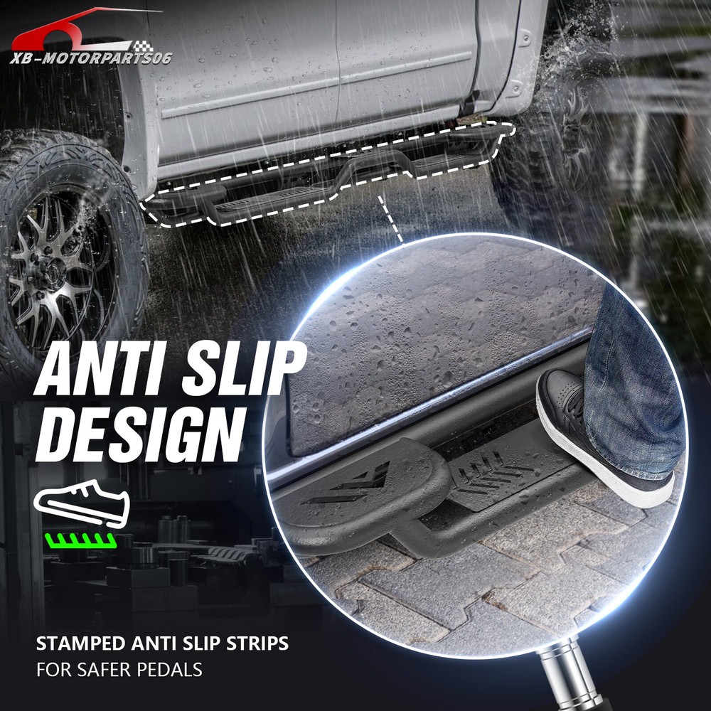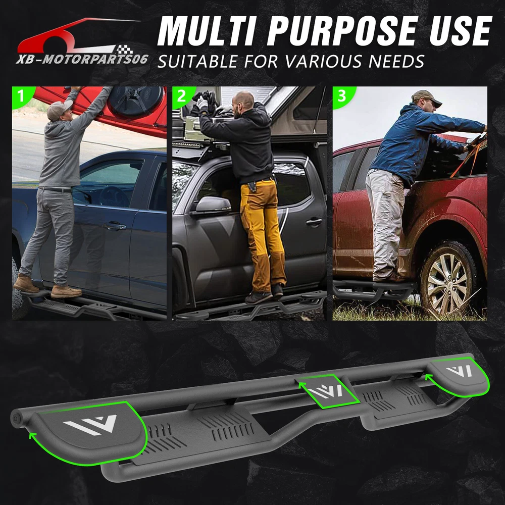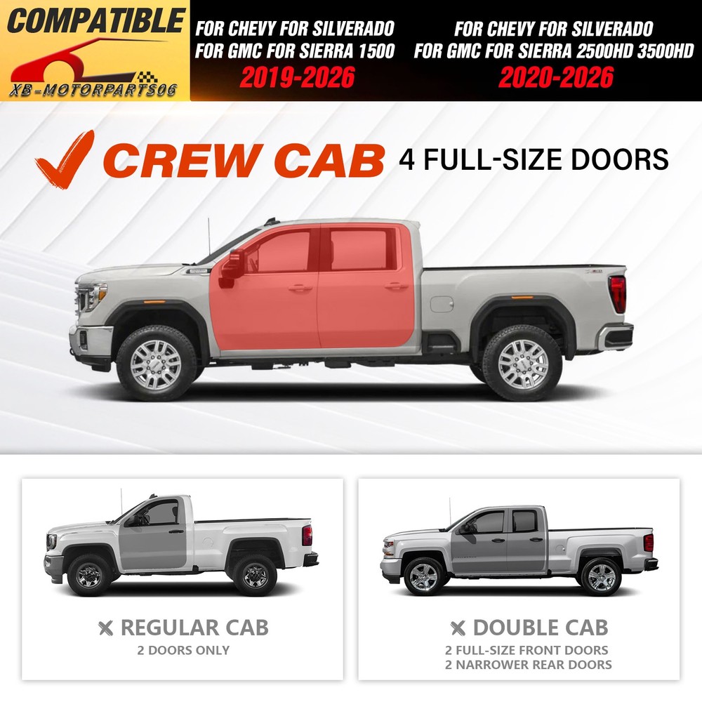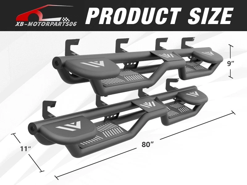 Three Raised Steps Running Boards For 20-26 Silverado&Sierra 2500 3500HD CrewCab Suitable Models : Compatible with 2019-2026 Chevy Silverado & GMC Sierra 1500, 2020-2026 Chevrolet Silverado/Sierra 2500 3500 HD Crew Cab ( Excl 2019 1500 LD/Limited ) Package Includes : 2 x Running Boards Side Steps, brackets, instructions, and all necessary hardware Product Information : Product Dimensions: 80 x 11 x 9 inches Installation mode: Bolt-On Weight Limit: 550LBS Placement on Vehicle: Left and Right Item Weight: 78.28 pounds Material: Carbon Steel Color: Black (hand measurements may have an error of 2-3 mm/0.078-0.118 in) Feature: ① Three Raised Steps for easy access to the roof, allowing multiple users to work on the vehicle simultaneously; ② Dual-layer Layout provides enhanced convenience for vehicles equipped with lift kits and oversized tires, offering easier access to the roof while maintaining sufficient ground clearance; ③ The high-quality black powder coating provides outstanding rust and corrosion resistance. Constructed from heavy-duty 2mm carbon steel, each side can withstand a weight of 550 pounds. Precision laser cutting and stamping techniques contribute to a non-slip step surface and enhanced traction; ④ Simple bolt-on installation without the need for drilling or cutting. Precisely aligned mounting holes require only about 20 minutes for complete setup ; Warranty Period : 2 year Standard Shipping (FedEx Ground or FedEx Home Delivery) Will usually ship within 3 business days of receiving cleared payment Suitable Models : Compatible with 2019-2026 Chevy Silverado & GMC Sierra 1500, 2020-2026 Chevrolet Silverado/Sierra 2500 3500 HD Crew Cab ( Excl 2019 1500 LD/Limited ) Package Includes : 2 x Running Boards Side Steps, brackets, instructions, and all necessary hardware Product Information : Product Dimensions: 80 x 11 x 9 inches Installation mode: Bolt-On Weight Limit: 550LBS Placement on Vehicle: Left and Right Item Weight: 78.28 pounds Material: Carbon Steel Color: Black (hand measurements may have an error of 2-3 mm/0.078-0.118 in) Feature: ① Three Raised Steps for easy access to the roof, allowing multiple users to work on the vehicle simultaneously; ② Dual-layer Layout provides enhanced convenience for vehicles equipped with lift kits and oversized tires, offering easier access to the roof while maintaining sufficient ground clearance; ③ The high-quality black powder coating provides outstanding rust and corrosion resistance. Constructed from heavy-duty 2mm carbon steel, each side can withstand a weight of 550 pounds. Precision laser cutting and stamping techniques contribute to a non-slip step surface and enhanced traction; ④ Simple bolt-on installation without the need for drilling or cutting. Precisely aligned mounting holes require only about 20 minutes for complete setup ; Warranty Period : 2 year
