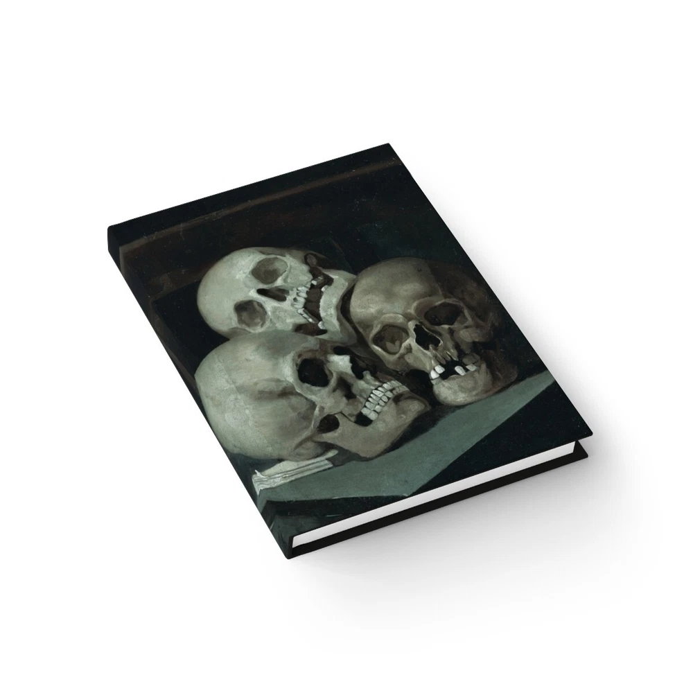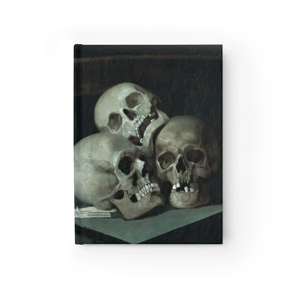 Public Domain Art embellished Old & Uncouth, Printed Hardcover Journal - The macabre haunting vision of Gothic Memento Mori, of graveyards or pirate treasure... For those who are really serious about their journal. This 128 page hardcover journal offers a wraparound durable print from front to back. An aspiring author's new best friend. .: 128 ruled line single pages .: Full wraparound print .: Casewrap binding 128 ruled line pages (64 sheets) Page paper weight: 90 gsm One size: 5" x 7" (12.7 x 17.8 cm) Full wraparound print Casewrap binding