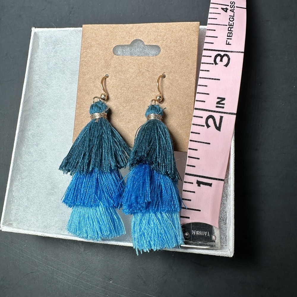 Elevate your accessory game with these stunning Three-Layer Three Color Tassel Earrings. These 2-inch long earrings are perfect for any occasion, from engagements to birthdays and even Valentine's Day. The beautiful blue color and tassel design add a touch of beauty and art to any outfit. These earrings come complete with a box and have never been worn before. The hook closure ensures a secure fit and makes them easy to put on and take off. Made of high-quality cotton material, these earrings are sure to become a staple in your jewelry collection. Ready2Rummage Thank you so much for taking the time to view our item today. Everything you find in our eBay store was handpicked by either my husband or myself. We are a very small business and we enjoy bringing you all the cool/useful items we find when out on our auction date nights. Most items we offer are vintage and used, some are Vintage New Old Stock (NOS). All Items are Sold As Is/ As Found. We do our best to give you a ton of photo shots so you can get a clear description of what it looks like. I find that pictures are better than words most times. So if you need a photo of a certain angle or maybe a measurement that I missed, reach out... I am happy to help. I want to make sure you have all the information you can get before you buy. We try to point out any damage or unnatural flaws that we see with accuracy and honesty. However, we are human and we may miss something so please don't hesitate to reach out to us after you receive the item and send us photos if you find any issues that were not clearly shown in the listing. -PAYMENTS- Please pay for your purchase as soon as possible to ensure fast shipping. If you need to wait a couple days to make the payment, please shoot me a message so I know to hold it for you. Any items unclaimed and unpaid will be put back on the shelf after 3 days. -SHIPPING- I am centrally located in the US so my shipping time should be faster and my shipping/handling prices should be better. I do send out daily discounts and accept reasonable offers to help offset the shipping prices. I ship with USPS, UPS and every now and then FedEx. ** All items are packed with care as you can see from my exceptional feedback.** Orders are usually processed within 1 business day; exceptions are only for extenuating circumstances. Sometimes I put 3 day shipping so that I have time to locate proper and safe packaging for your item or if I am on vacation for a couple days. Typically the items go out same day. Items purchased late in the day (CST) will be processed the next business day. I do accept orders from outside of the country, but I only run them through the eBay Global Shipping Program. Make sure your address is correct in the eBay system. I will only ship to the address you have on file with eBay. -RETURNS/REFUNDS- We lean on eBay return policies to help not only protect our buyers, but also ourselves. If you need to make a return, please reach out quickly so we can promptly get you taken care of. Refunds are processed within 2-4 days after the item is delivered back to me. I video record opening all my return packages in case there is ever a situation that needs to be turned into the eBay fraud team. I would encourage you to do the same on your packages. -CONTACT US- We take pride in taking care of our customers and do everything in our power to make sure they are satisfied! If you are not satisfied with your purchase please reach out to me to make it right before you leave a negative or neutral feedback. We are a small family operation and we are always very cautious about scammers trying to pull a fast one on us, but if you have a legitimate issue and everything falls within the eBay guidelines, I am always available to help find a solution for my customers needs by contacting the eBay customer service to find the appropriate solution. Don't hesitate to reach out. Thanks!