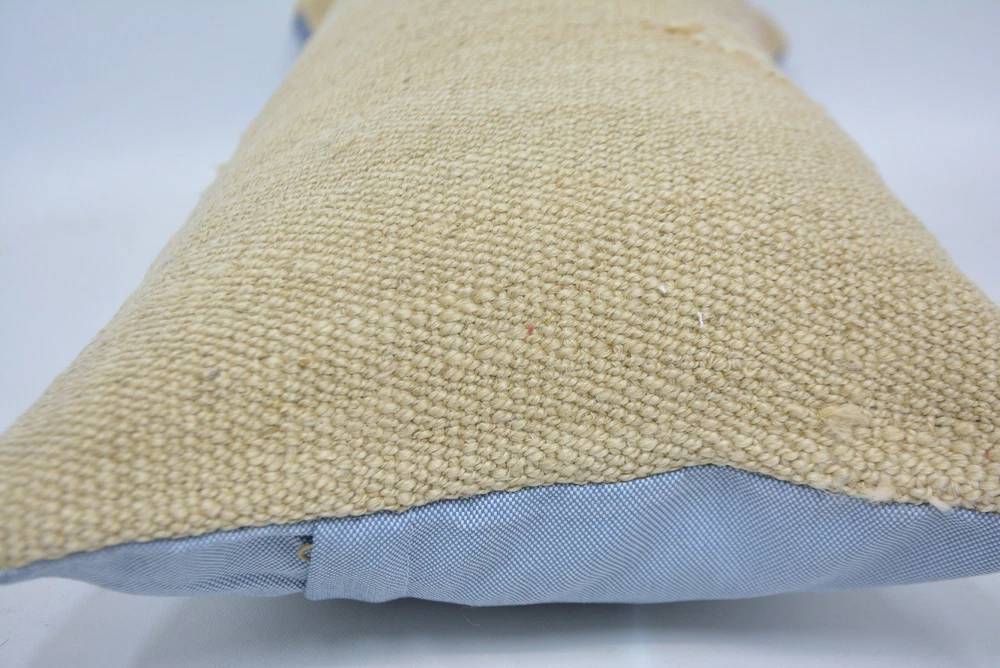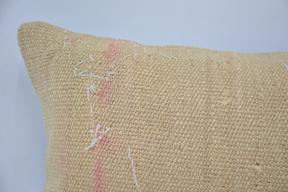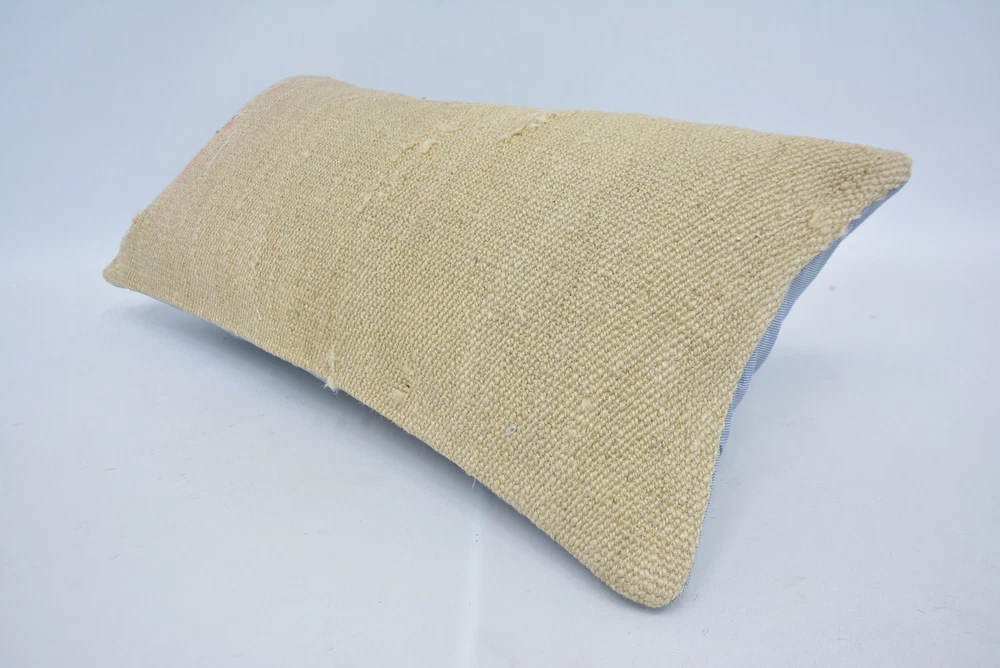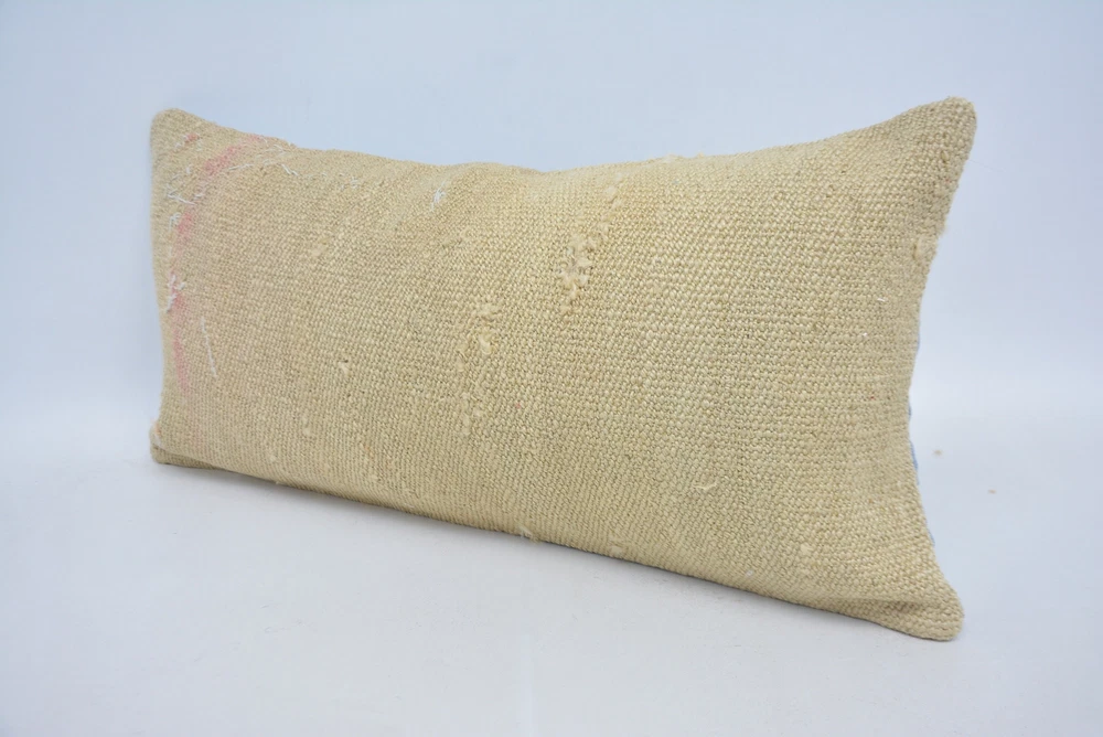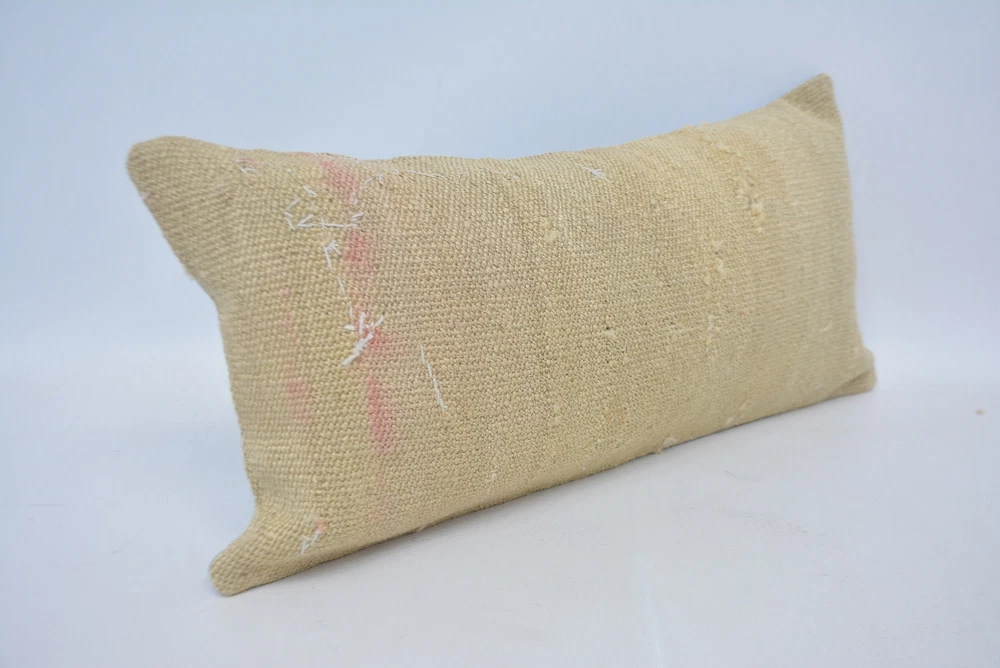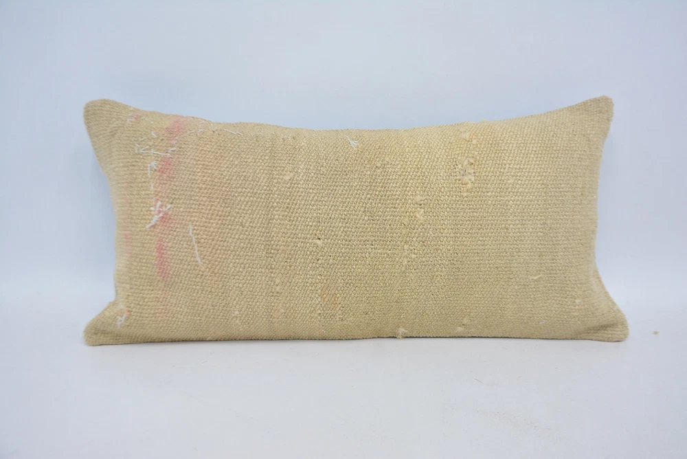 Throw Pillow Cover, 12"x24" Beige Cushion Case, Turkish Kilim Pillow