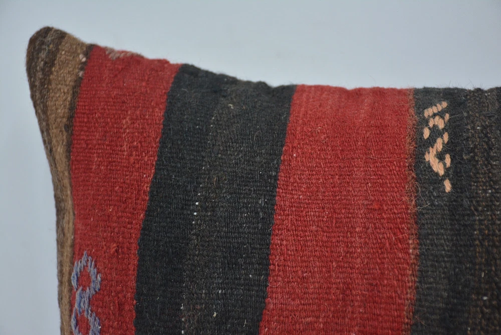 Throw Pillow Covers, Pillow for Couch, Kilim Pillow Cover, 12"x24" Red Cushion
