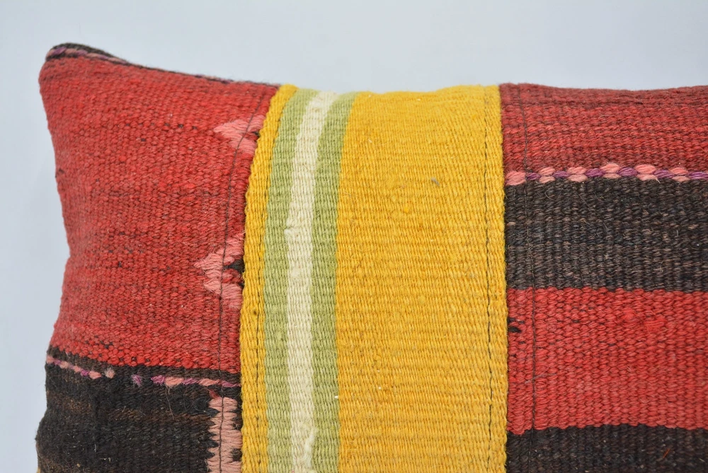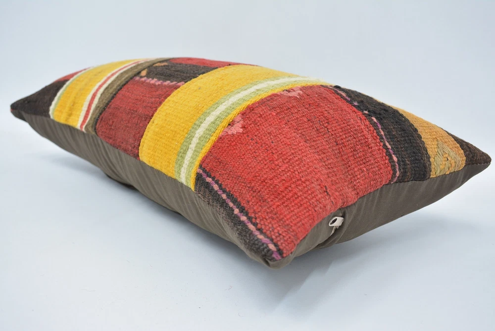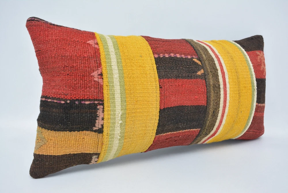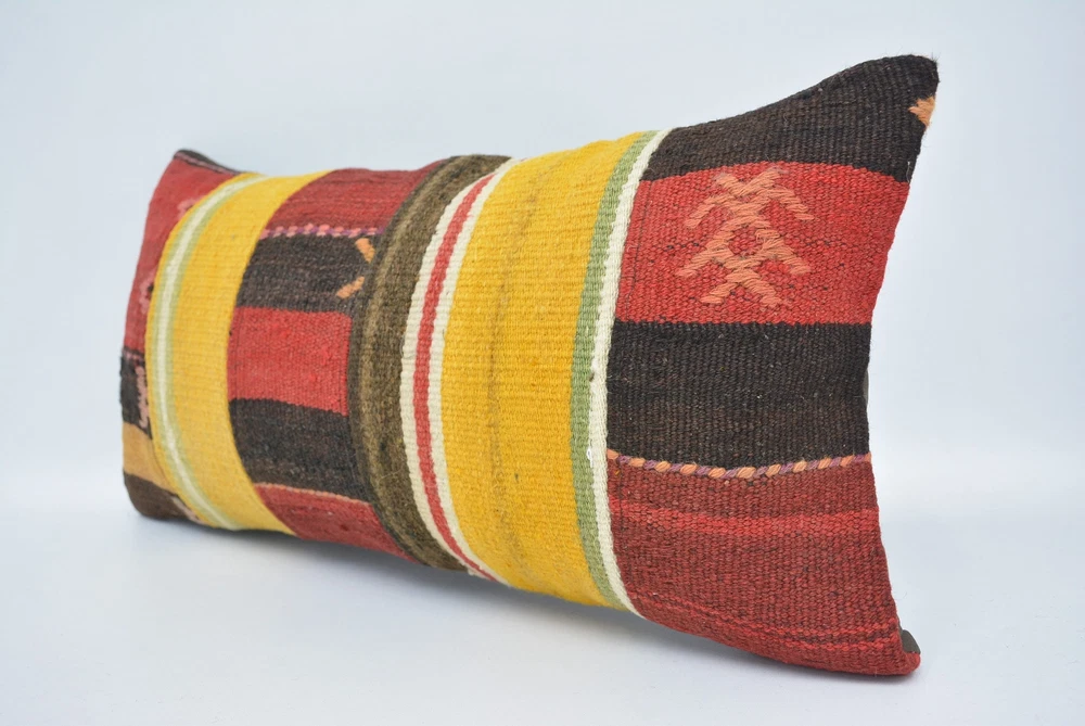 Throw Pillow, Kilim Pillows, Throw Pillow Covers, 12"x24" Yellow Pillow