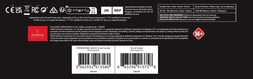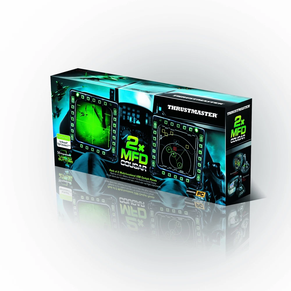 Thrustmaster MFD Cougar Pack (Compatible with PC) Description Pack of 2 multifunctional "USB Cockpit Panels", replicas of the U.S. Air Force F-16 MFD. Features: 2 programmable LEDs per MFD, to identify the MFD during programming. Multi-position, weighted, non-slip and detachable base 20 buttons + 4 switches per MFD = 48 programmable controls in total Multi-Function Display 3 pre-printed cardboard layouts with presets for Microsoft Flight Simulator Product Details: Release date: June 3, 2020 Product Dimensions: 12.99 x 2.56 x 5.91 inches; 0.04 ounces Type of item: Video Game Language: English, French Item model number: 2960708 Is Discontinued By Manufacturer: No Item Weight: 0.041 ounces Department: Electronics Manufacturer: Thrustmaster VG Country of Origin: USA Date First Available: September 1, 2004 Handling We will ship all orders within 3 business days of payment. Delivery We do not ship outside of the Continental US. Feedback We take our reputation seriously, we buy and sell online, so we understand the value of trust. If you are unsatisfied with your order, please contact us and we will work with you to resolve it to your satisfaction.