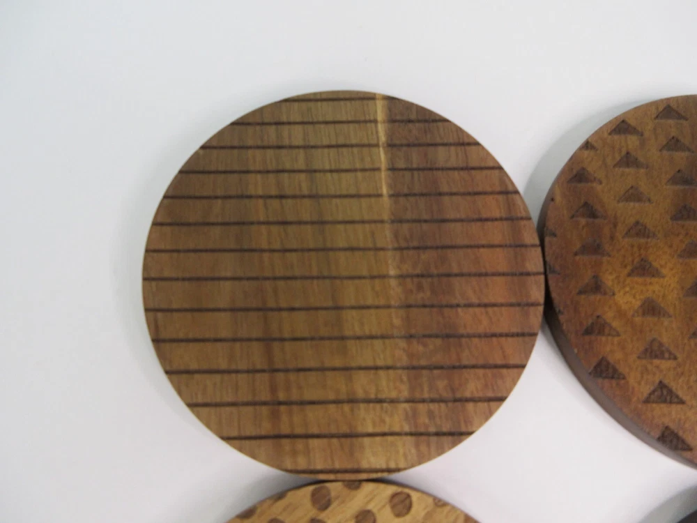 Thyme & Table Coasters Acacia Wood Round4 Piece Set Brown Laser Etched Design