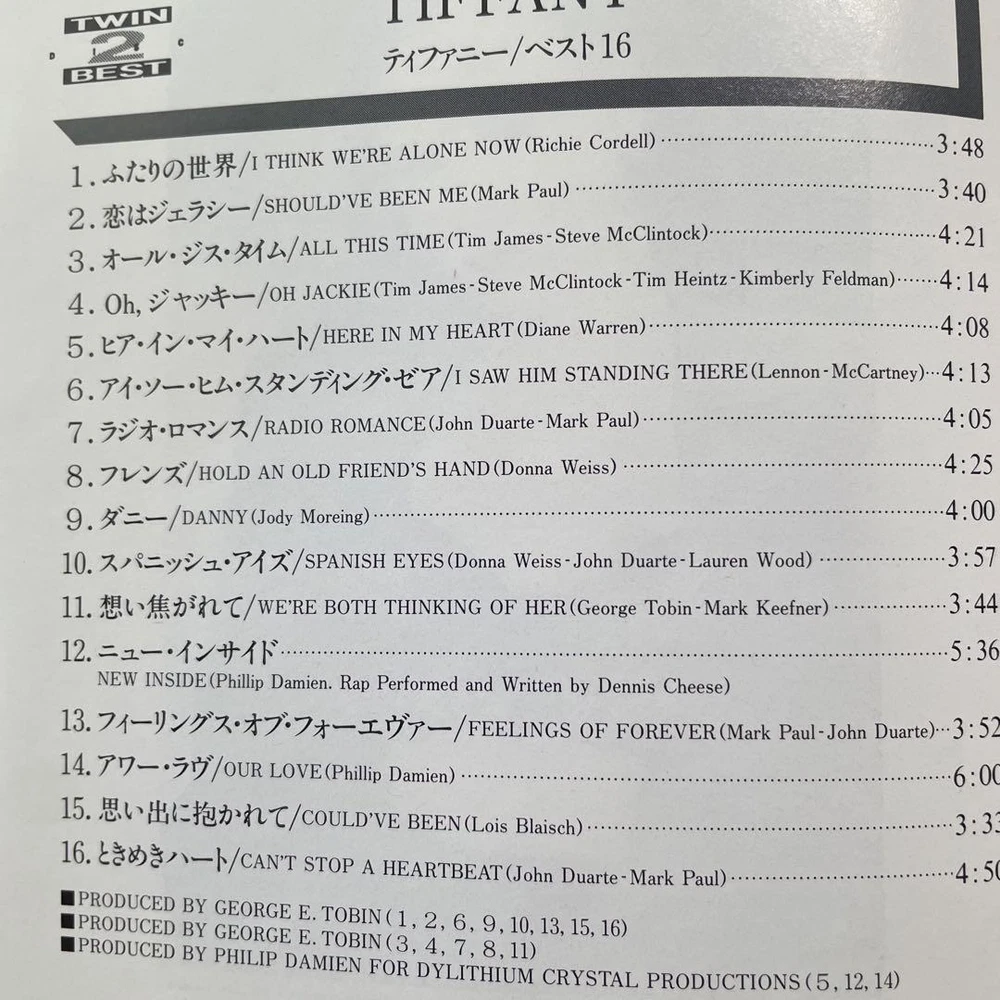 Description Extremely rare edition CD Japanese best edition With obi tape closure 1. I THINK WE'RE ALONE NOW 2. SHOULD'VE BEEN ME 3. ALL THIS TIME 4. OH JACKIE 5. HERE IN MY HEART 6. I SAW HIM STANDING THERE 7. RADIO ROMANCE 8. HOLD AN OLD FRIEND'S HAND 9. DANNY 10. SPANISH EYES 11. WE'RE BOTH THINKING OF HER 12. NEW INSIDE 13. FEELINGS OF FOREVER 14. OUR LOVE 15. COULD'VE BEEN 16. CAN'T STOP A HEARTBEAT If you have any questions, please do not hesitate to ask. ^_^ Policy Payment You can use various payment methods based on eBay Managed Payments. Import duties, taxes and charges are not included in the item price or shipping charges. These charges are the buyer's responsibility. Shipping Expedited Shipping We always send the item with a tracking number. So please place an order without any concern on delivery. You can always track the delivery status. Shipping is only available to the address registered in eBay. If you want us to send another address, please change your address on eBay and then place an order. Shipping is available from Monday to Friday. Weekends are not available because freight companies are closed. Economy Shipping Delivery in 2-4 weeks. It may be delayed depending on the area and weather. Without tracking number. Cancellations & Returns Cancellation or returns will be accepted only if the item has an obvious problem that was not mentioned in the listing description. If that, please let us know within 3 days you got the item. Buyer is responsible for shipping costs and any charge incurred shipping products back. International Buyers Import duties, taxes and charges are not included in the item price or shipping charges. These charges are the buyer's responsibility. Please check with your country's customs office to determine what these additional costs will be prior to bidding/buying. These charges are normally collected by the delivering freight (shipping) company or when you pick the item up - do not confuse them for additional shipping charges.