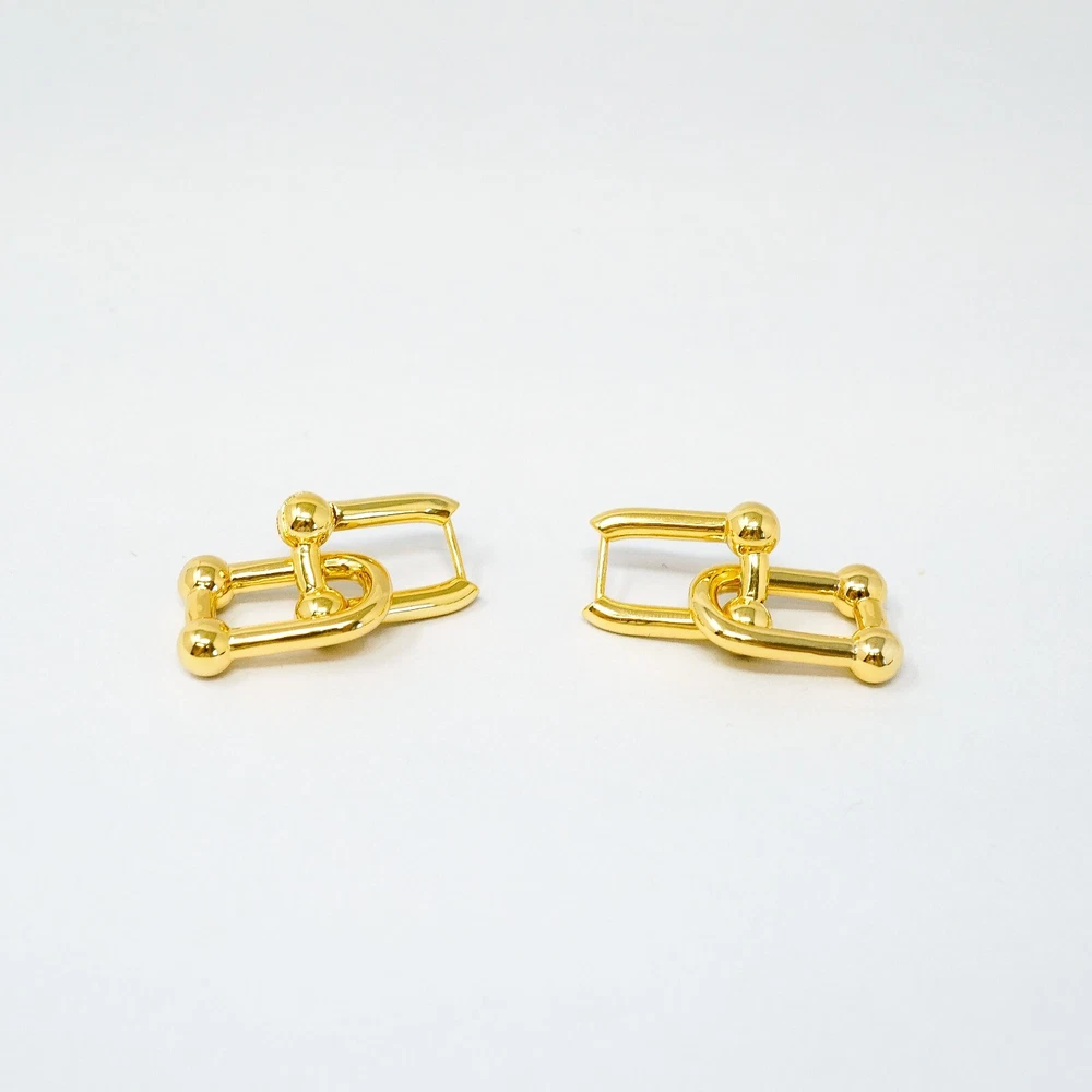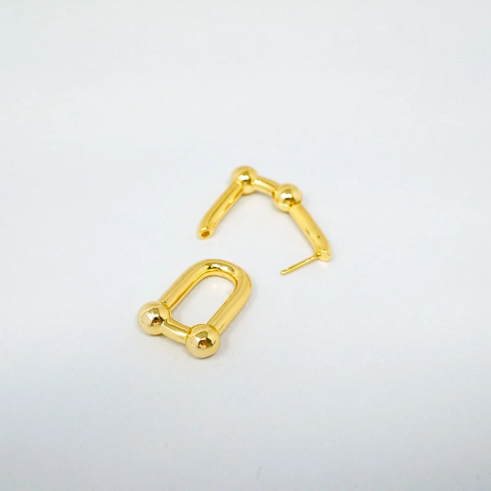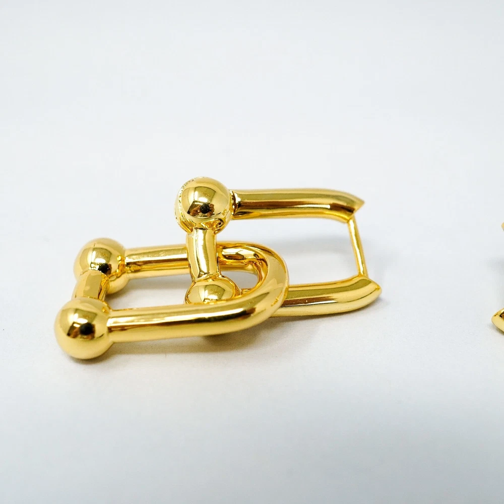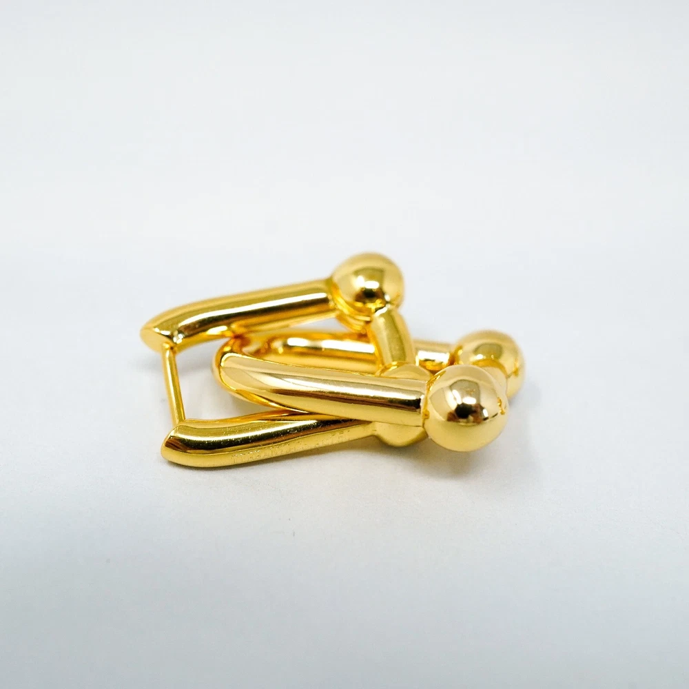 Tiffany & Co. 925 Gold Tone U Ball Hoops / Dangle Earrings With Gift Box Set