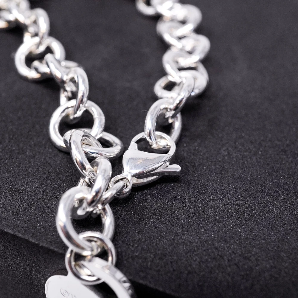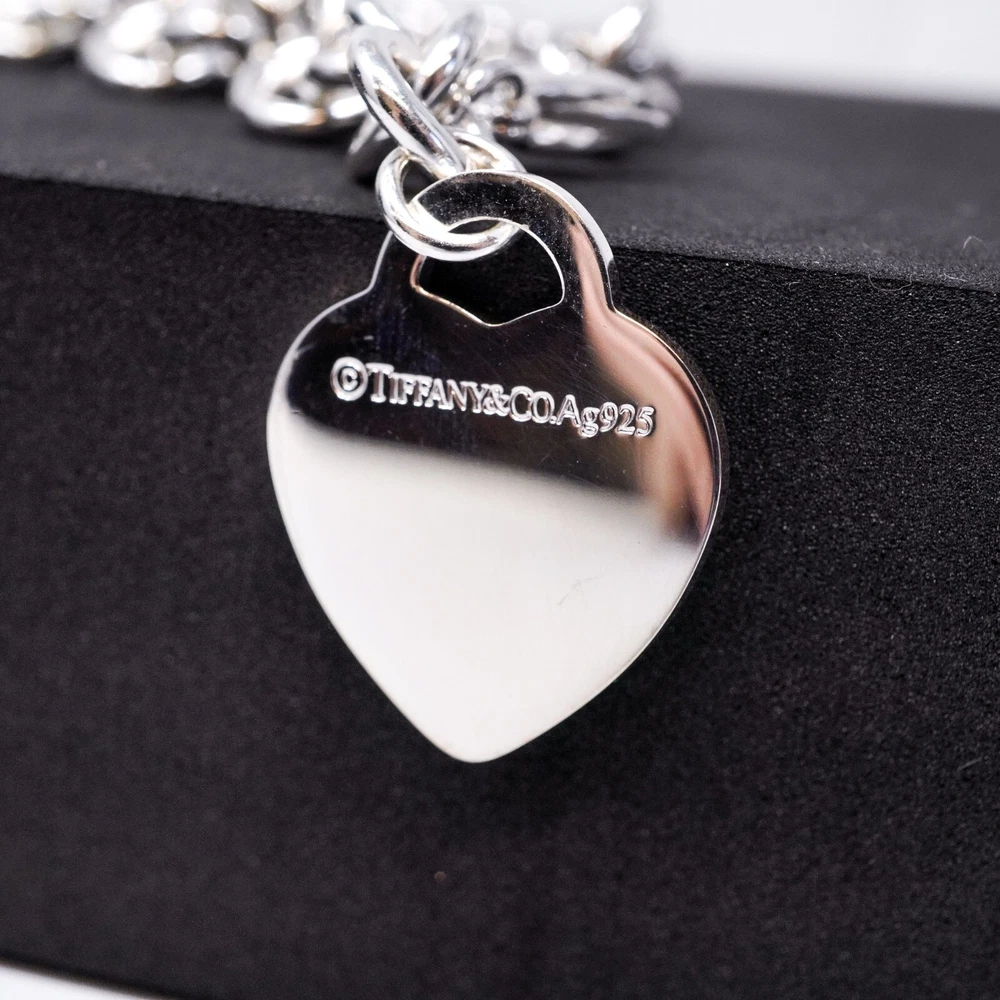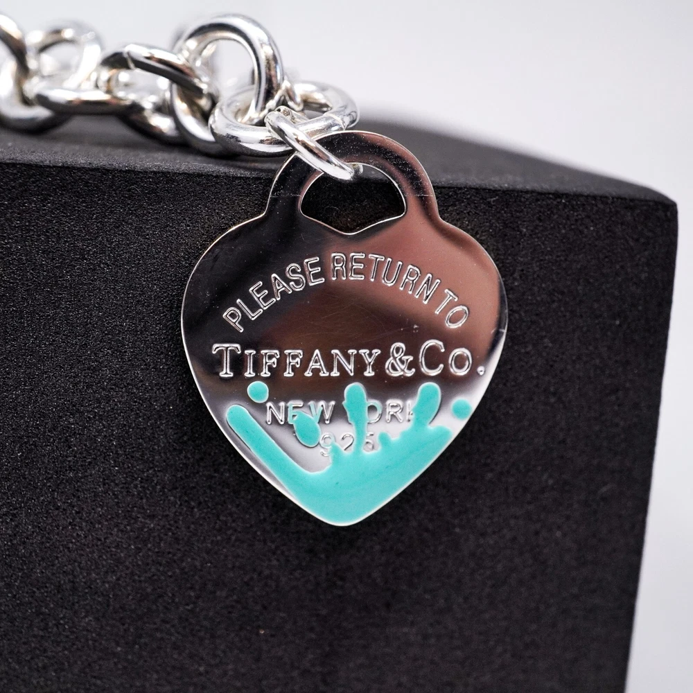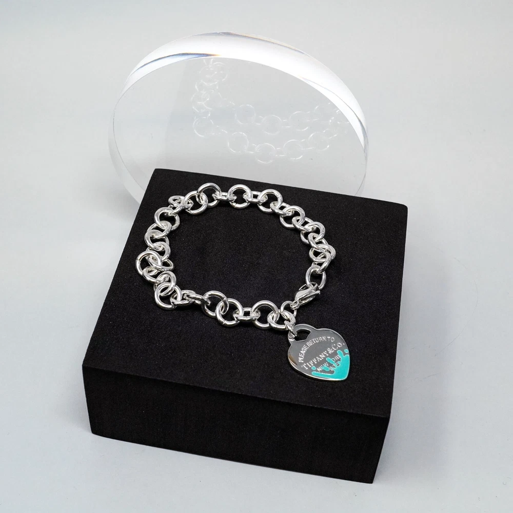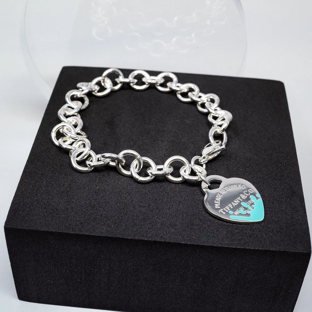 Tiffany & Co. 925 Silver, Blue Splash Heart Tag Bracelet 20cm With Gift Box Set