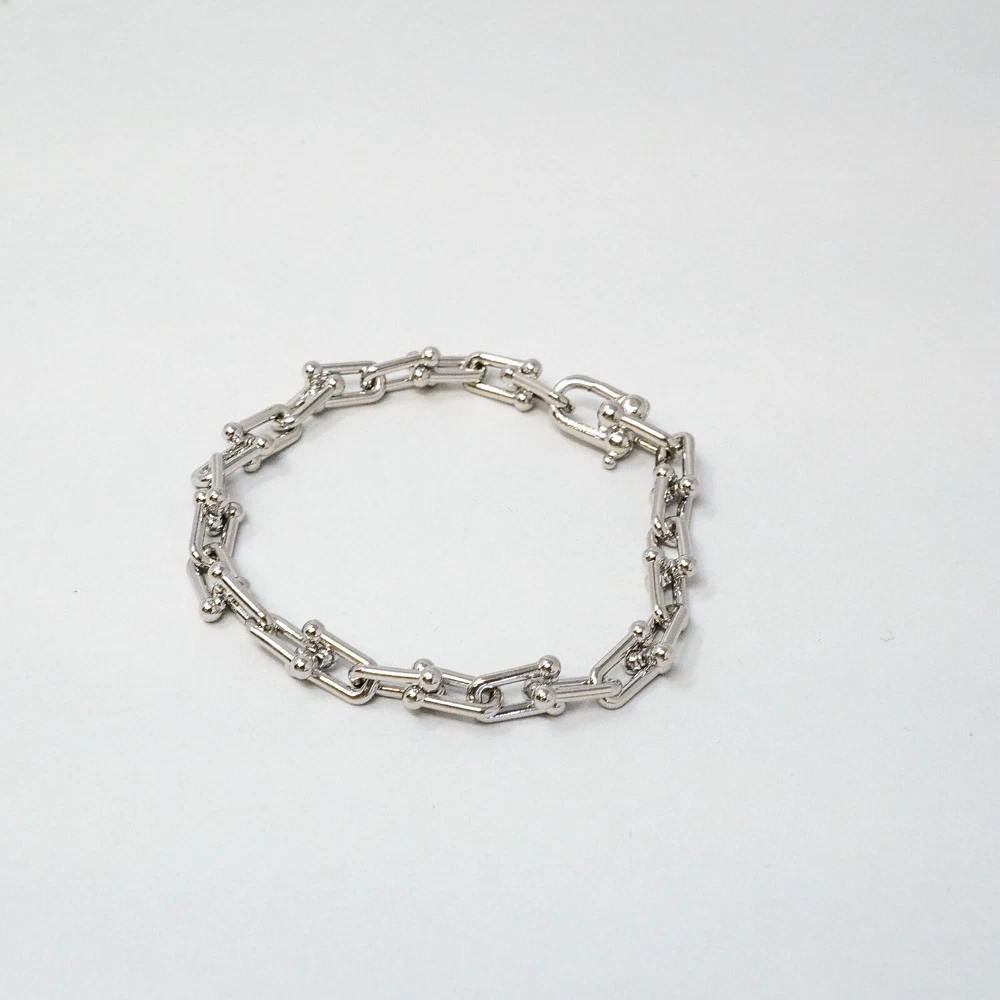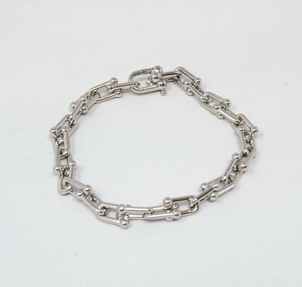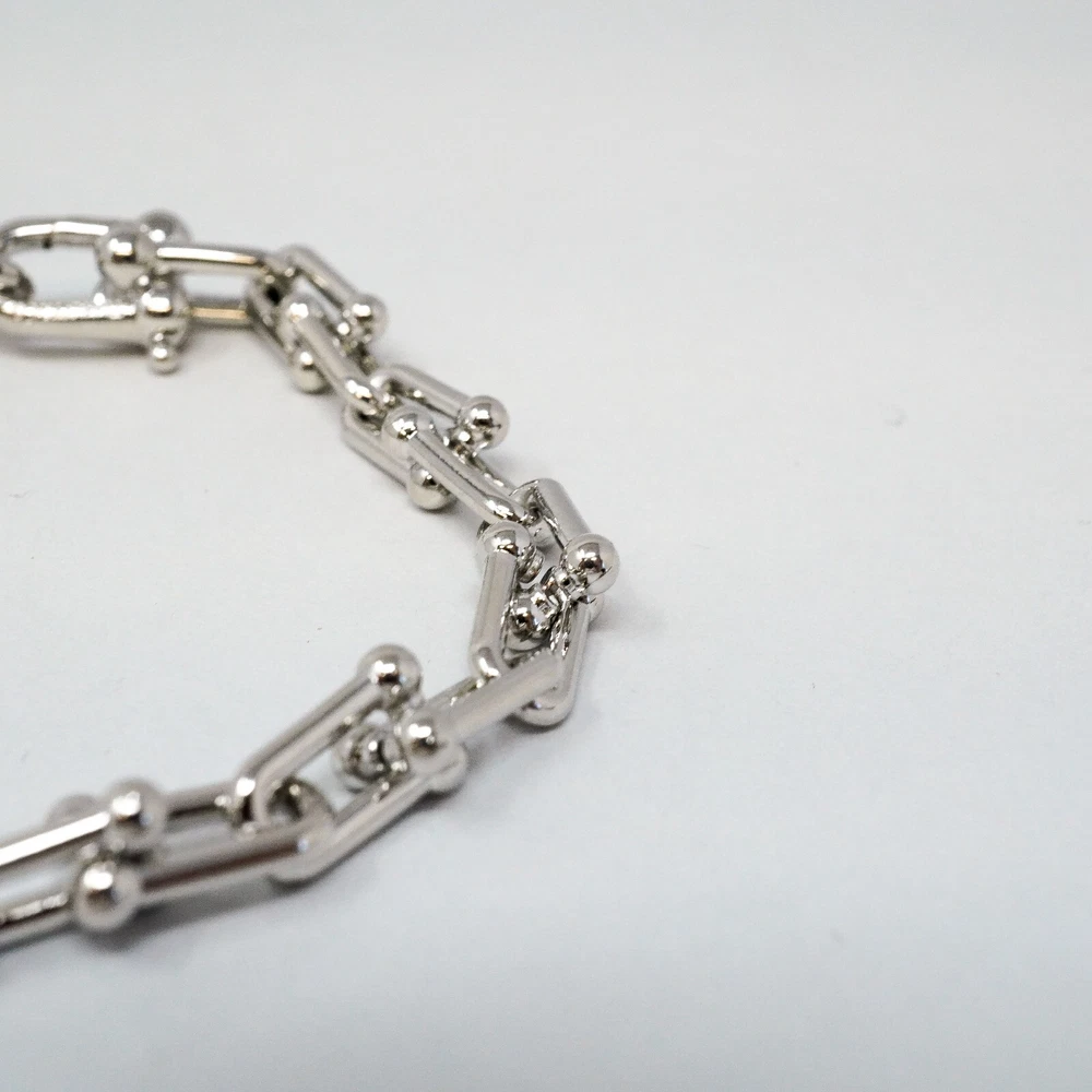 Tiffany & Co. 925 Silver Hardware U Ball Link Bracelet 20cm With Gift Box Set