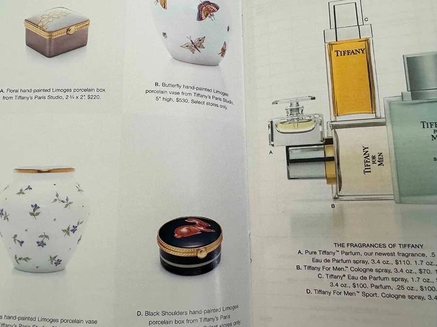 * LOT of 3 TIFFANY & Co. VINTAGE CATALOGS ... PHOTOS & PRODUCT INFORMATION ... 1. "HOLIDAY SELECTIONS 2005" ... 52 Pages. 2. "SUMMER SELECTIONS 2004" ... 51 Pages. 3. 'SUMMER SELECTIONS 2006" .... 52 Pages. Approx. 5 1/4" by 8 1/2" ... Stapled Spine. Semi-Gloss Covers. * Some Fine Jewelry and Home Products include PERETTI , SCHLUMBERGER , ATLAS , LIMOGE. BLACK SHOULDERS etc.... ** DIAMONDS, RUBIES, SAPPHIRES, EMERALDS, AMETHYST , GOLD, SILVER, PORCELAIN, CRYSTAL, SILVERWARE, CLOCKS, PERFUME, WATCHES TIFFANY MARK, PEARLS, BIRDs, MOON, LADYBUG, RAINBOW DROPS, NECKLACE, BUTTERFLY, CHARM BRACELETS DOGS, HORSES, Etc. Etc. *WONDERFUL ARRAY OF TIFFANY JEWELS AND DELIGHTs. * GREAT VINTAGE RESOURCE CATALOGS. *USED PRE-OWNED VERY GOOD CONDITION. : Some normal wear and aging. Mailing Labels blacked out.... A few spots, marks, aging tone. *Please see photos above as part of the description. (Colors may vary on photos from Catalogs) Ships via USPS mail, Carefully wrapped. No International Shipping. Ships in US only. THANK YOU! & ALOHA! PS: Listing some Other Catalogs ...