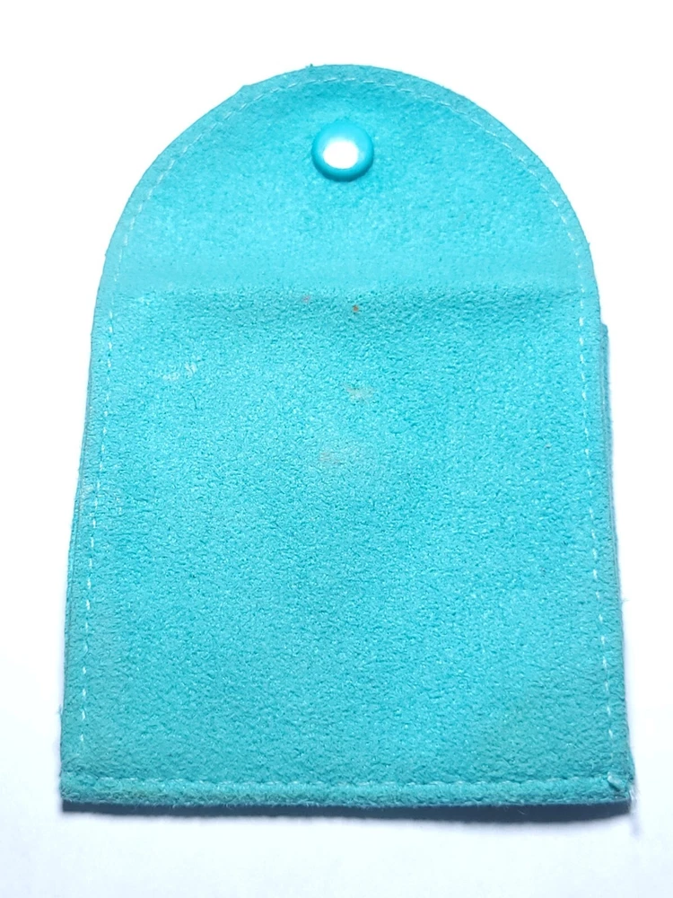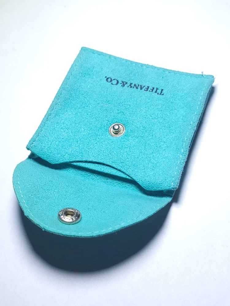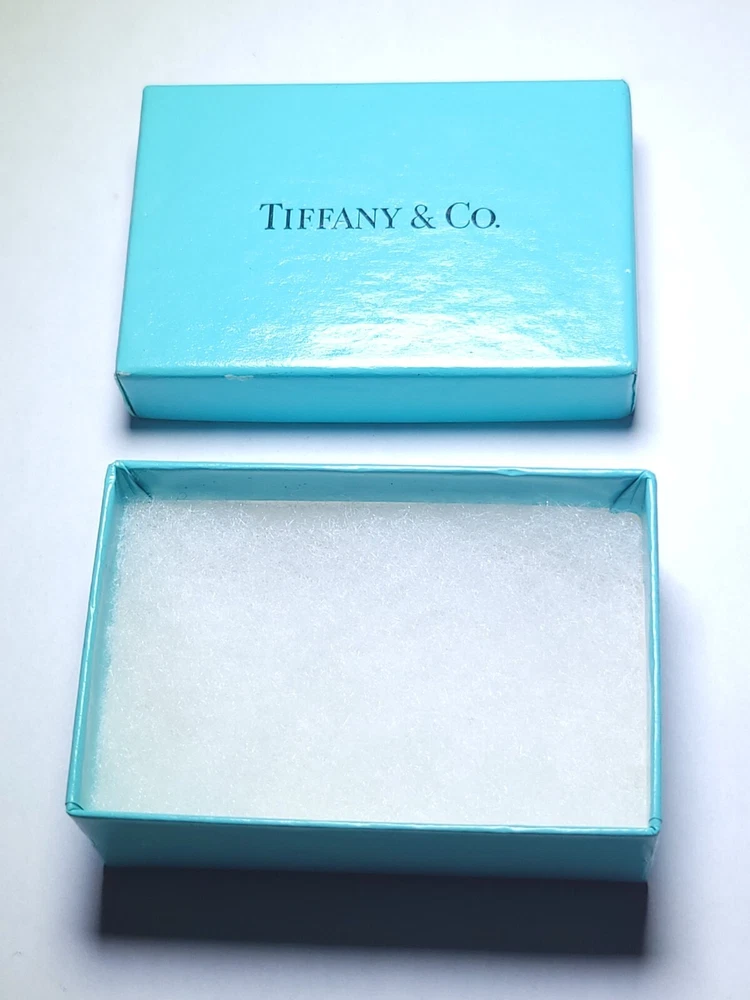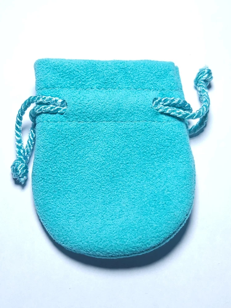 This lot of 2 small dust bags and one box in beautiful Tiffany blue is perfect for storing or gifting Tiffany & Co jewelry. They are designed to fit rings, bracelets, necklace, and brooches. The brand name is prominently displayed on the bags, ensuring that your jewelry is stored in style.
