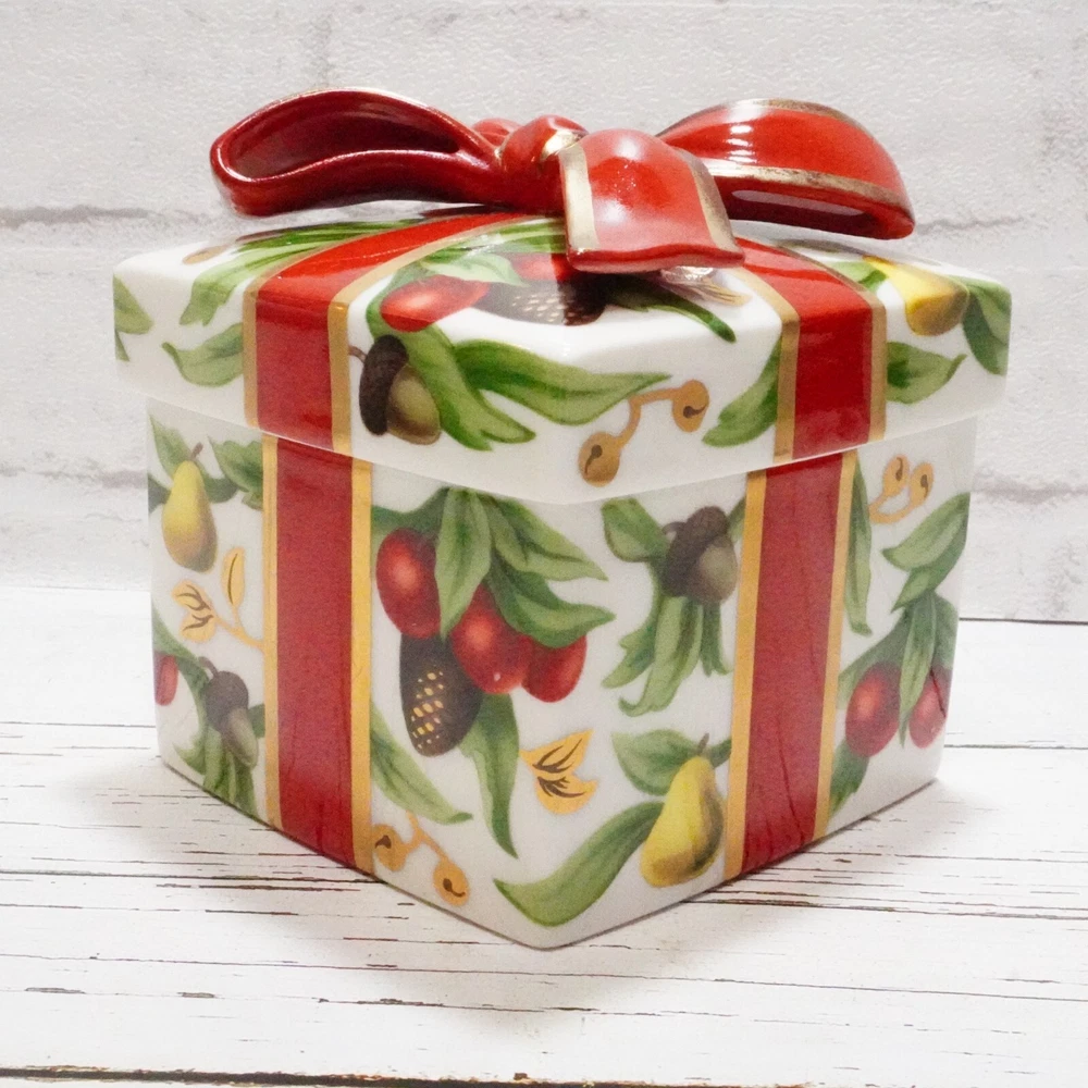 This adorable Tiffany & Co. trinket box is a festive holiday treasure! The classic red ribbon design on porcelain makes it a charming keepsake, perfect for storing small jewelry or holiday trinkets. The used condition is still lovely, and shipping is reliable with tracking—no worries there. A great gift for Tiffany fans or collectors!