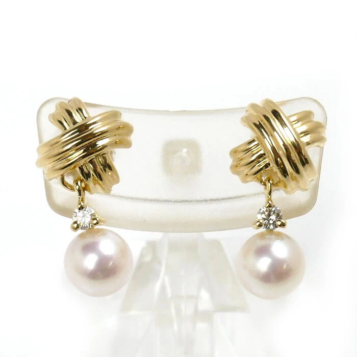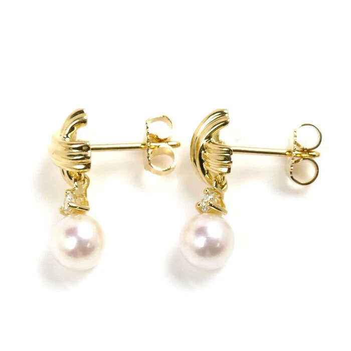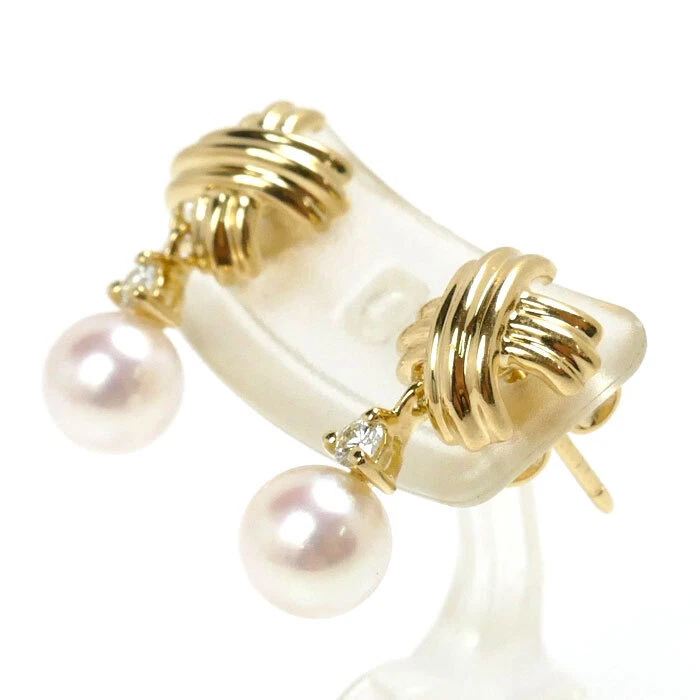 Tiffany & Co. K18YG Signature Pearl Approx.6.3mm Diamond Earrings 3.8g 481462