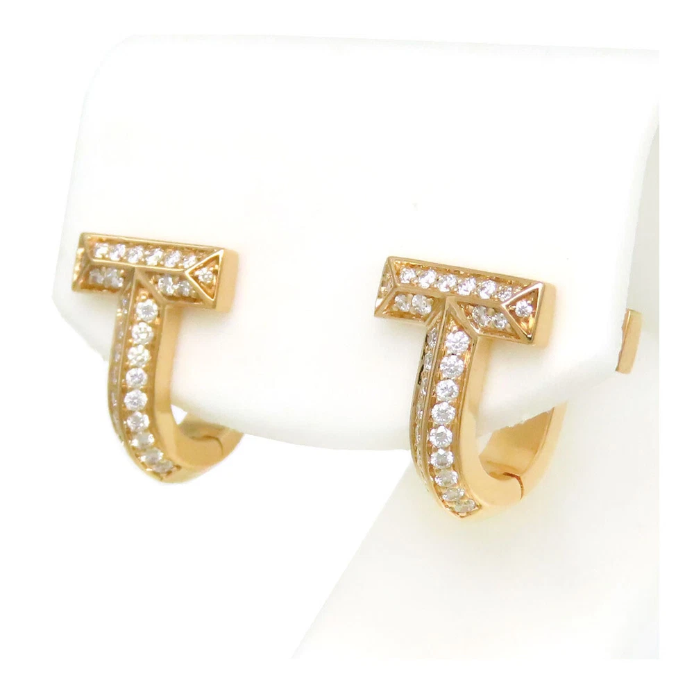 Tiffany & Co. T-One Half Diamond Huggie Au750 K18PG Earrings 717611