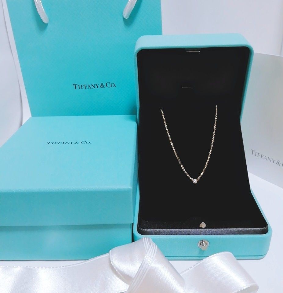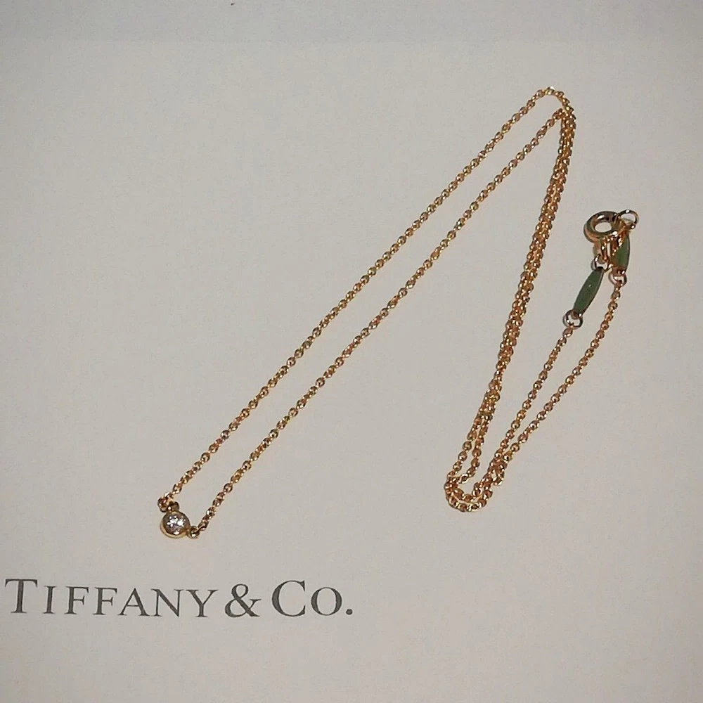 $ 512.8Tiffany Co Au750 YG 0.19CT Diamond By The Yard Necklace Pendant