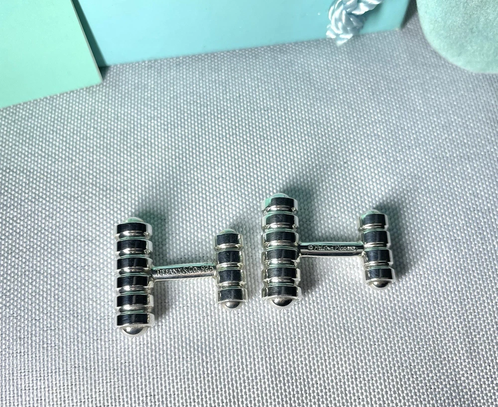 These gorgeous Tiffany cufflinks are still as stunning as the day I got them! The Paloma Picasso design has a sleek, modern elegance, and the sterling silver shines beautifully. The weight feels premium, and the craftsmanship is flawless—definitely authentic. Quick shipping and excellent seller communication made the purchase smooth. A perfect touch of luxury for any dress shirt!