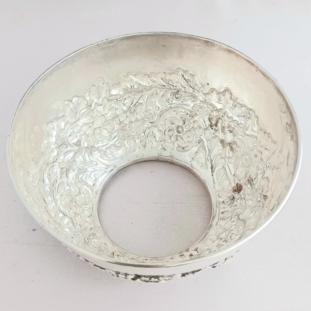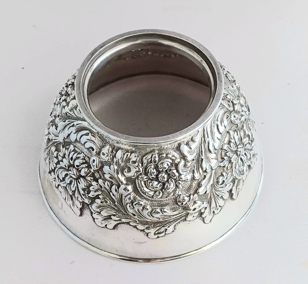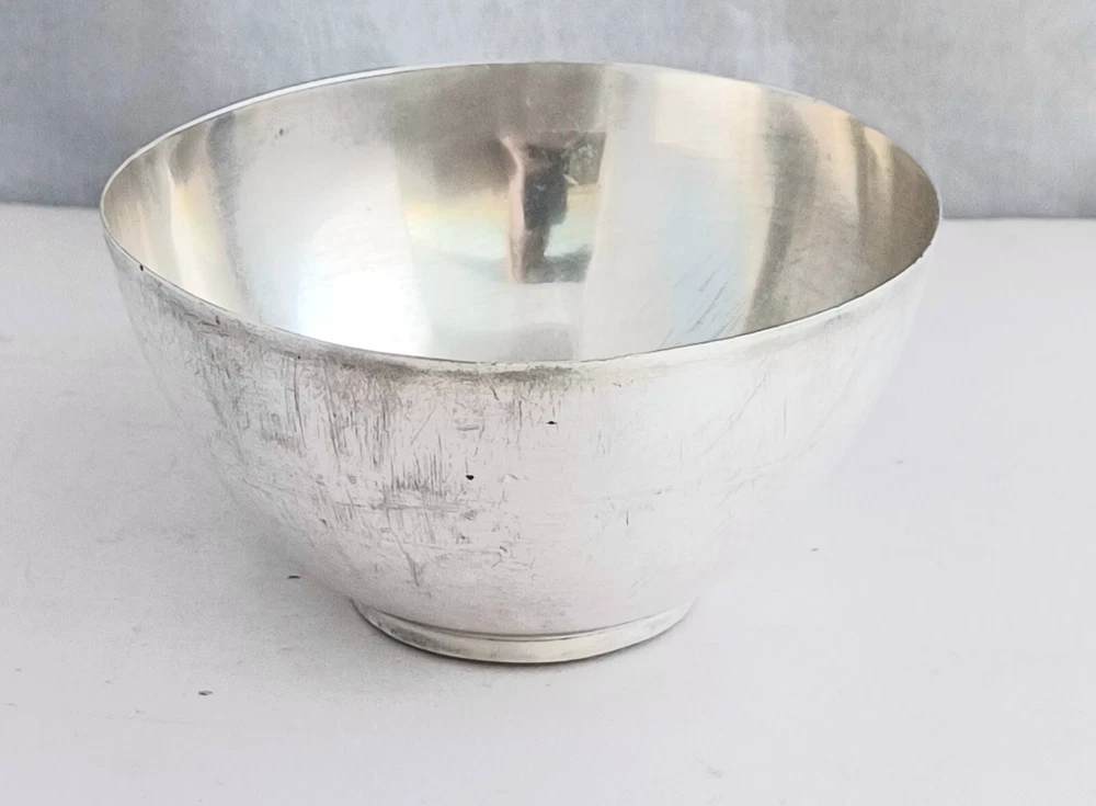 This Tiffany Small Sterling 2 Piece Bowl w/ Liner is in excellent condition. The inside bowl fits perfectly inside the bowl. Both pieces are marked Tiffany & Co Sterling. This Piece Measures 2" tall and 3 3/4" diameter and weighs a total of 5.36 troy oz. This piece is NOT monogrammed . This piece is marked on the bottom of the liner, as pictured and on the bottom inside rim of the outer bowl.. This would make a lovely addition to any sterling collection. This beautiful Tiffany & Co. sterling silver (.925) bowl comes with a matching liner and is perfect for any occasion. The intricate design and attention to detail make this bowl a true work of art. Crafted with the highest quality materials, this bowl is sure to impress. Whether you're using it for a special occasion or just as a decorative piece, this Tiffany & Co. bowl is a must-have for any collector or lover of beautiful silverware.