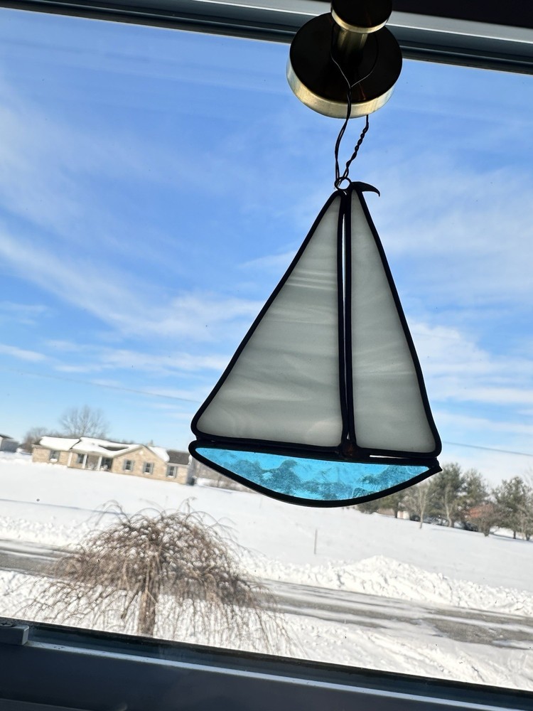 The Tiffany Stained Glass Collectors Society Vintage Sailboat Sun catcher is a handcrafted decorative accessory that adds a touch of vintage charm to any room. Made from stained glass and glass, this unique suncatcher features a multicolor design and a retro style that is sure to catch the eye. The sailboat design adds a nautical touch, making it a perfect addition to any space. Care instructions recommend cleaning with a damp cloth, ensuring easy maintenance and longevity. With no additional parts required, this handmade suncatcher is a beautiful and timeless piece for adult collectors.