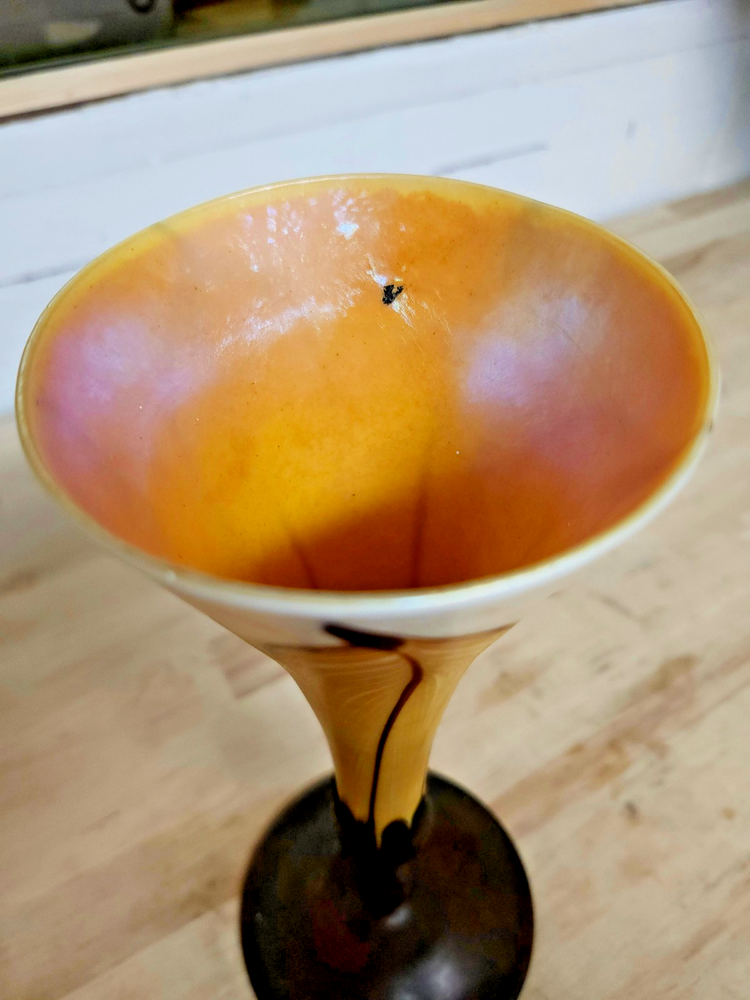Material: Glass Production Style: Favrile Glass Number in Pack: 1 Production Technique: Hand Blown Glass Occasion: All Occasions Theme: Studio Vintage: Yes Finish: Glossy Glassmaking Technique: Hand Blown Handmade: Yes Care Instructions: Clean with Damp Cloth Brand: Tiffany & Co. Time Period Manufactured: 1900-1919 Department: Adults Item Weight: 2 lb Type: Vase Original/Reproduction: Original Signed: Yes Subject: Feather