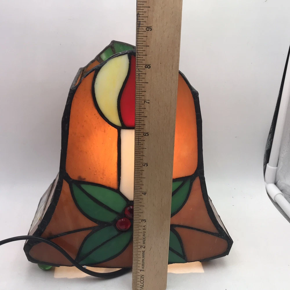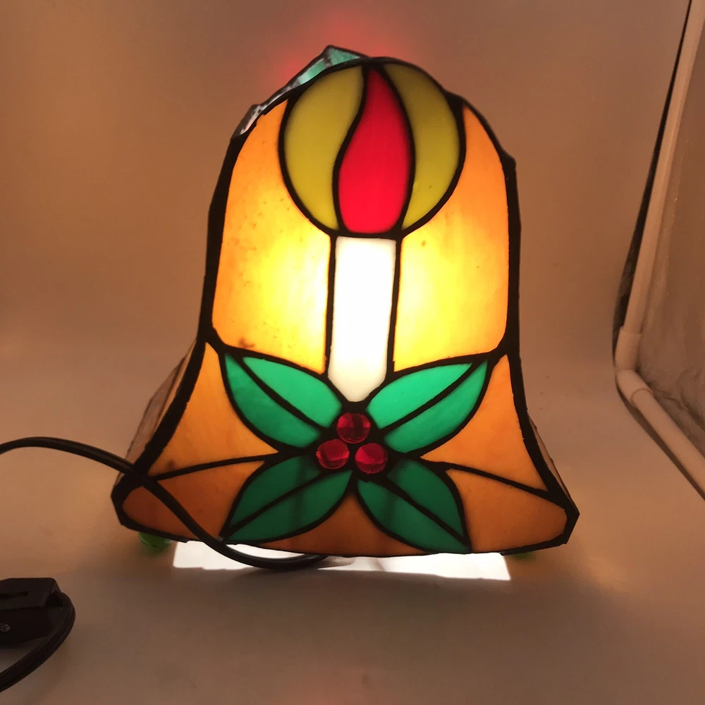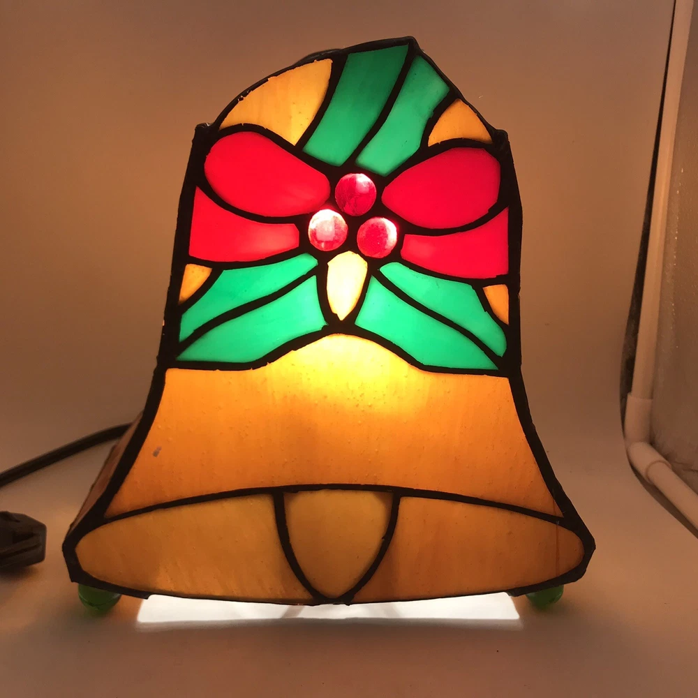 Tiffany Style Stained Glass Accent Lamp Christmas Décor Light VIntage Bell W Box