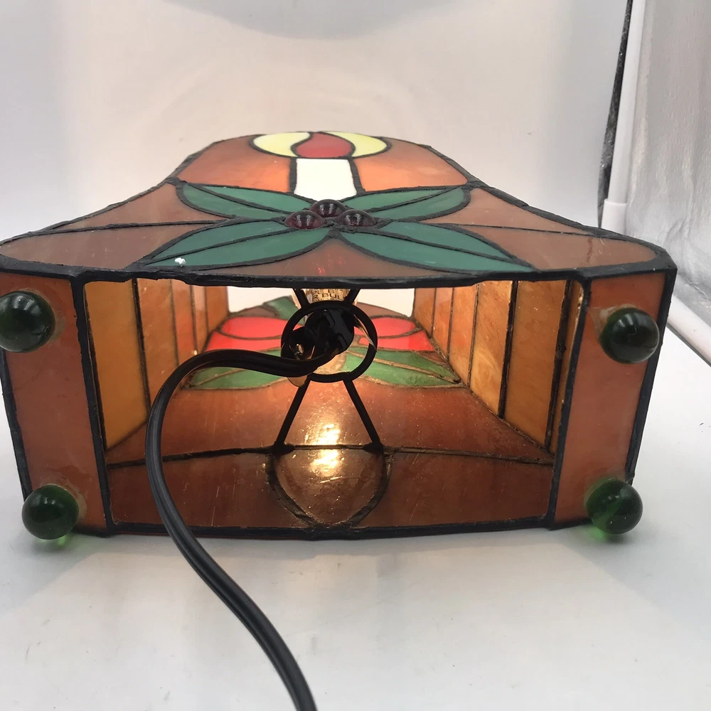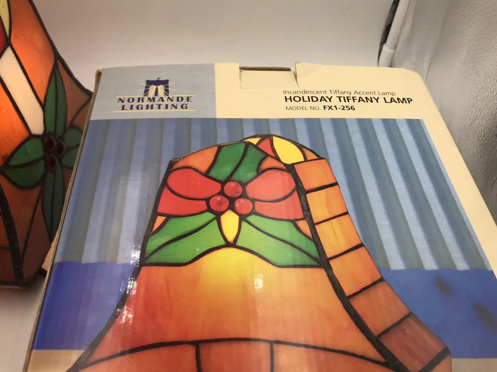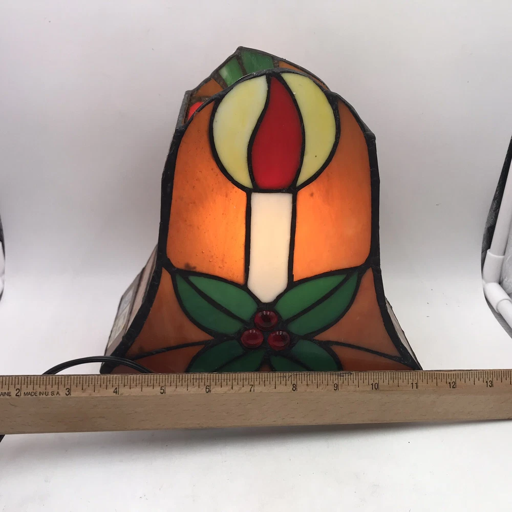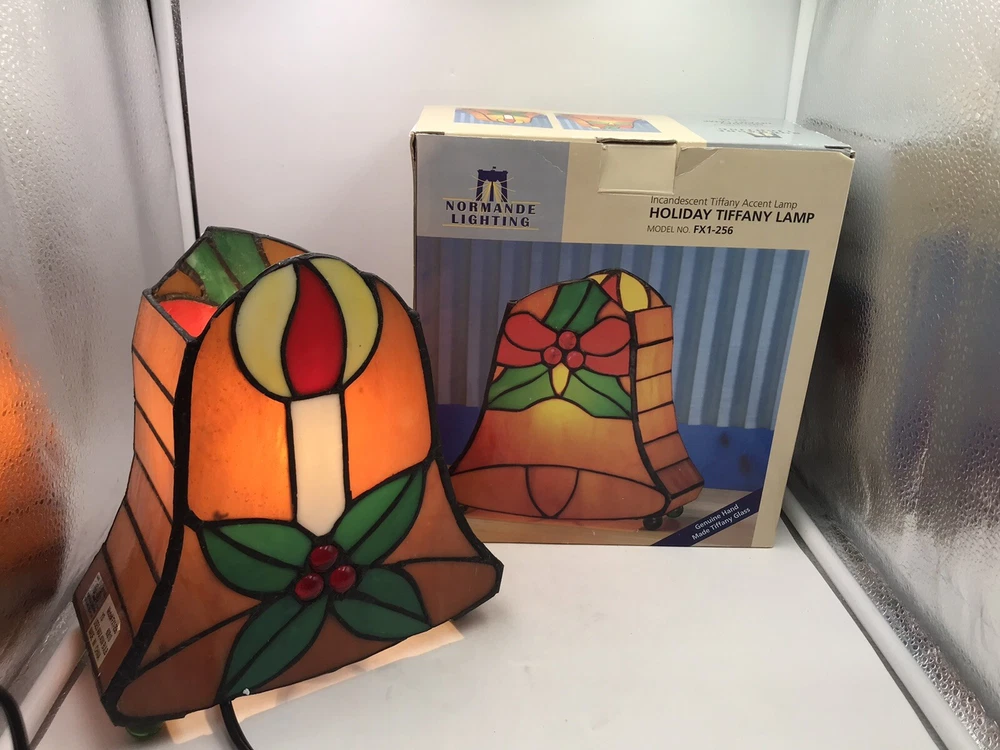 Tiffany Style Stained Glass Accent Lamp Christmas Décor Light VIntage Bell W Box
