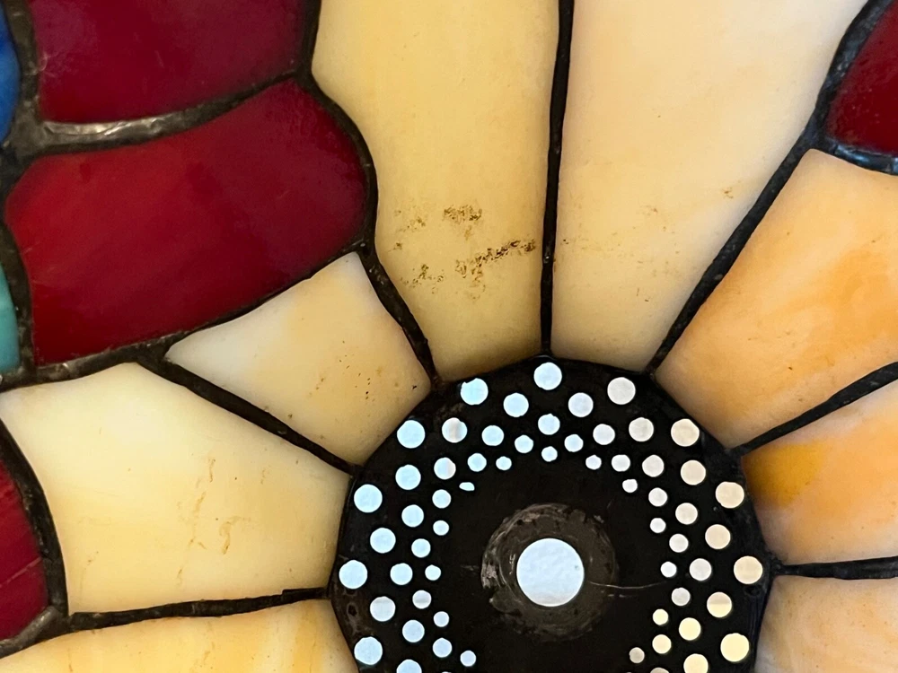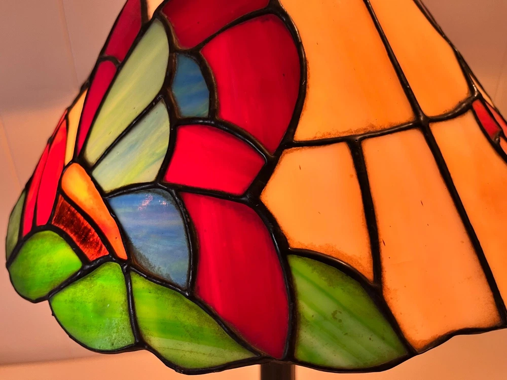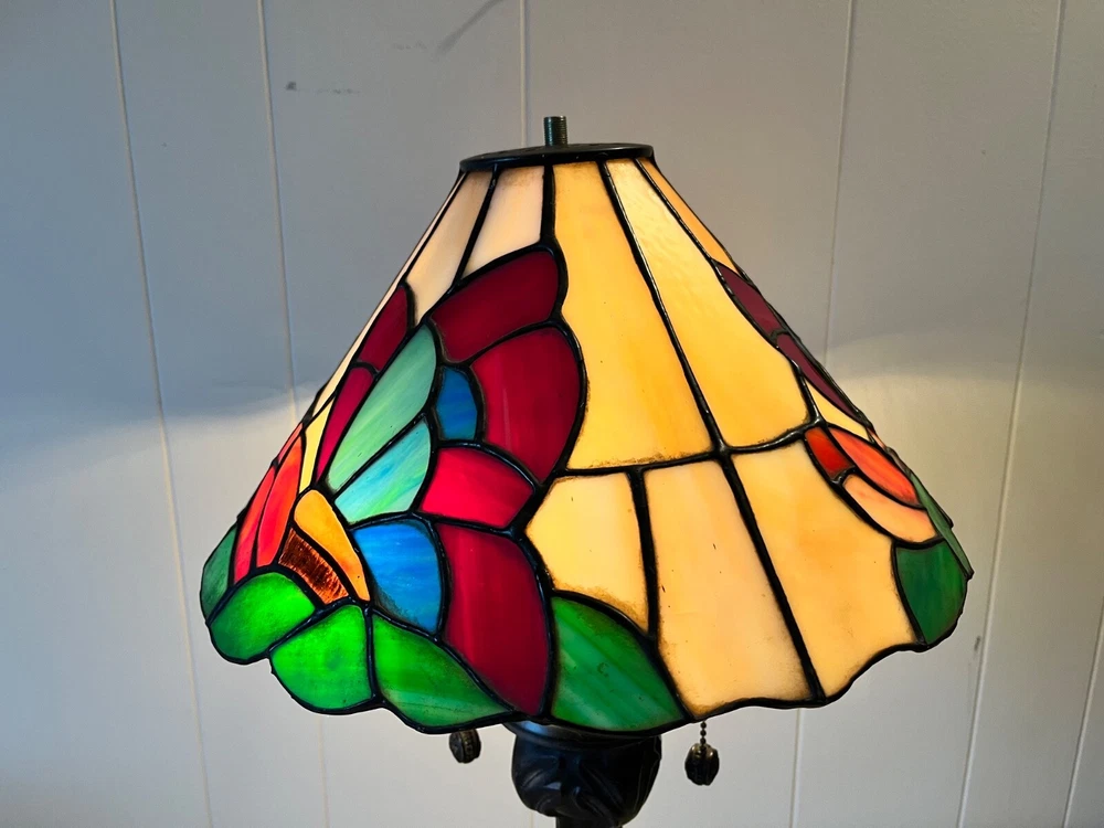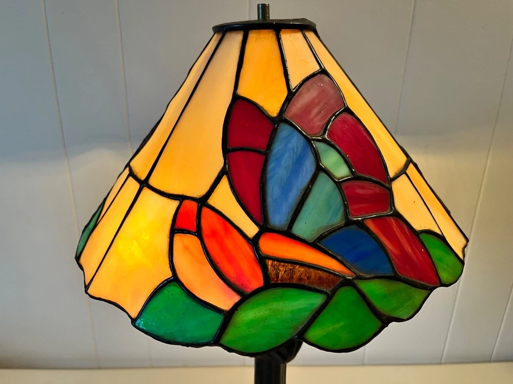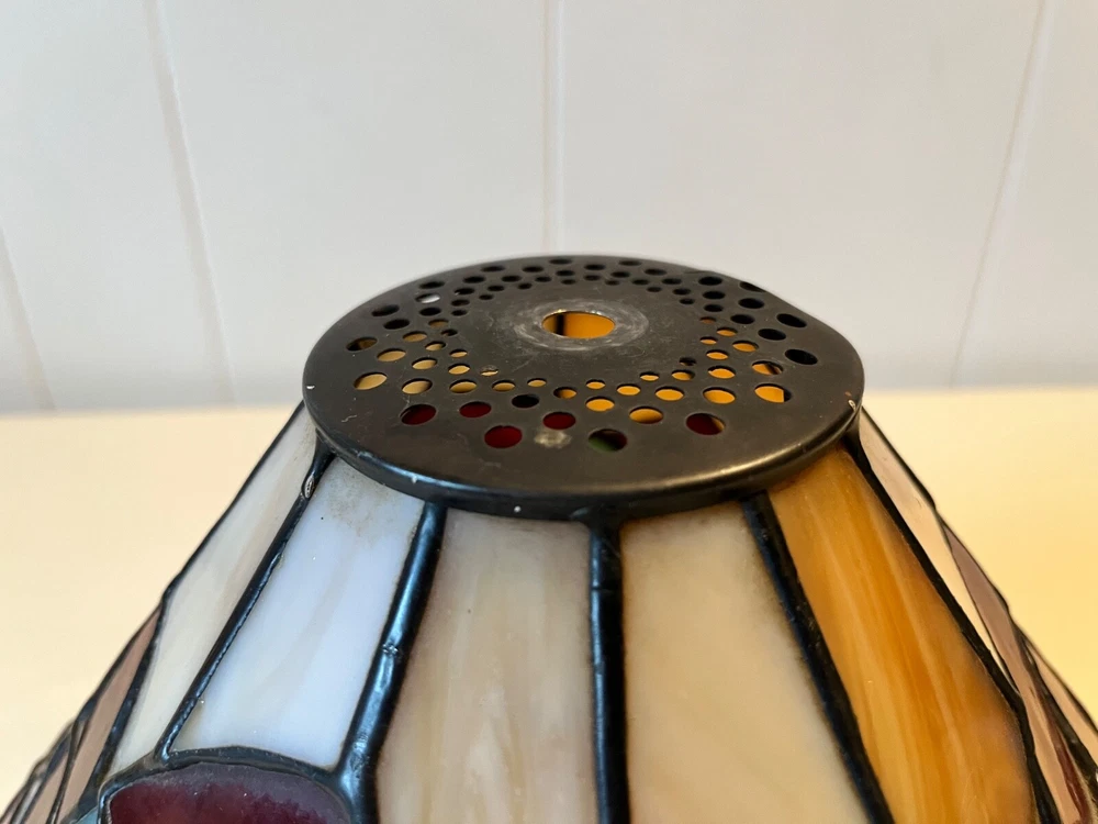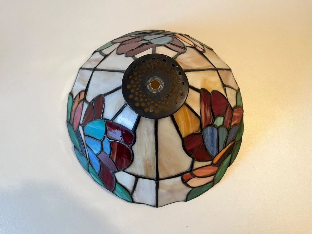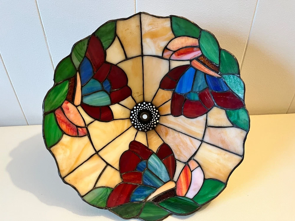 Tiffany Style - Stained Glass Lamp Shade. Good condition! No chips or cracks. A few areas have marks. Measures 12 3/4" - 13" W x 6 1/2" H. Beautiful colors! Lamp NOT included. Please feel free to contact me with any questions.