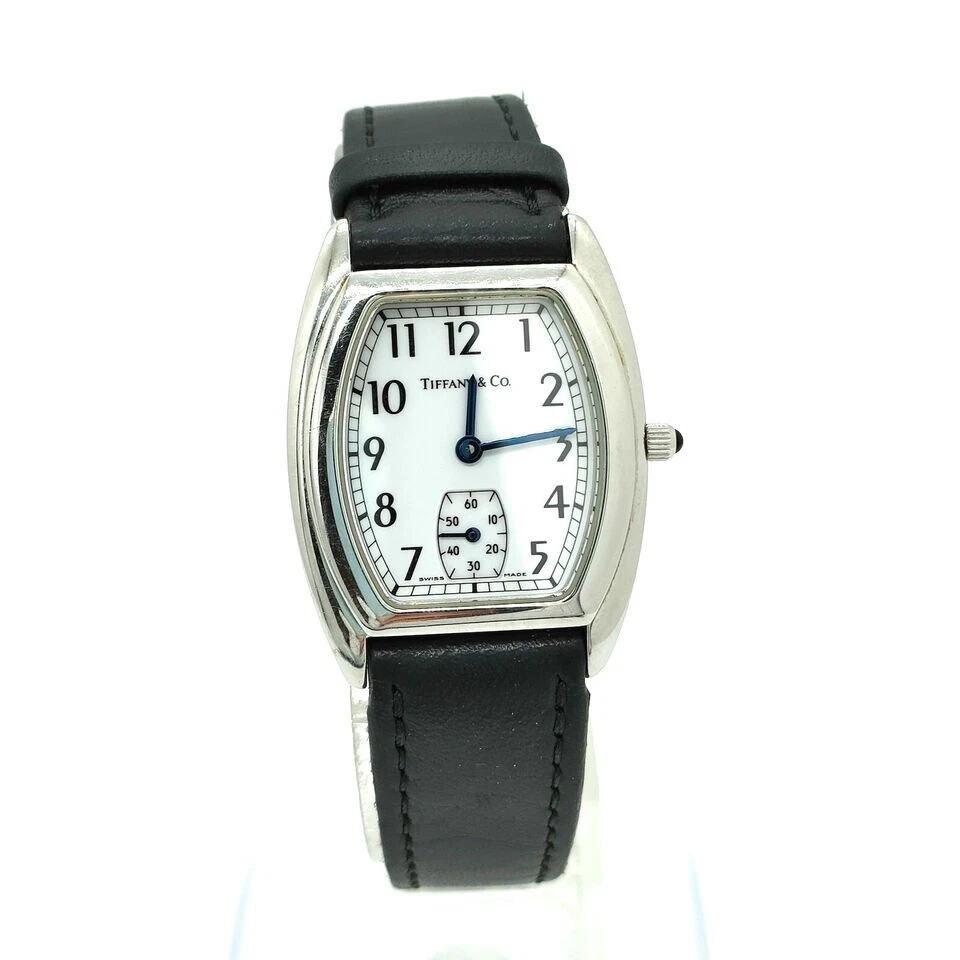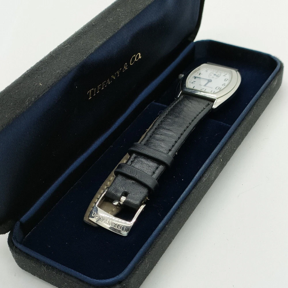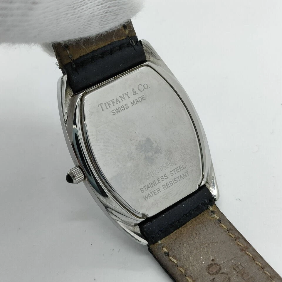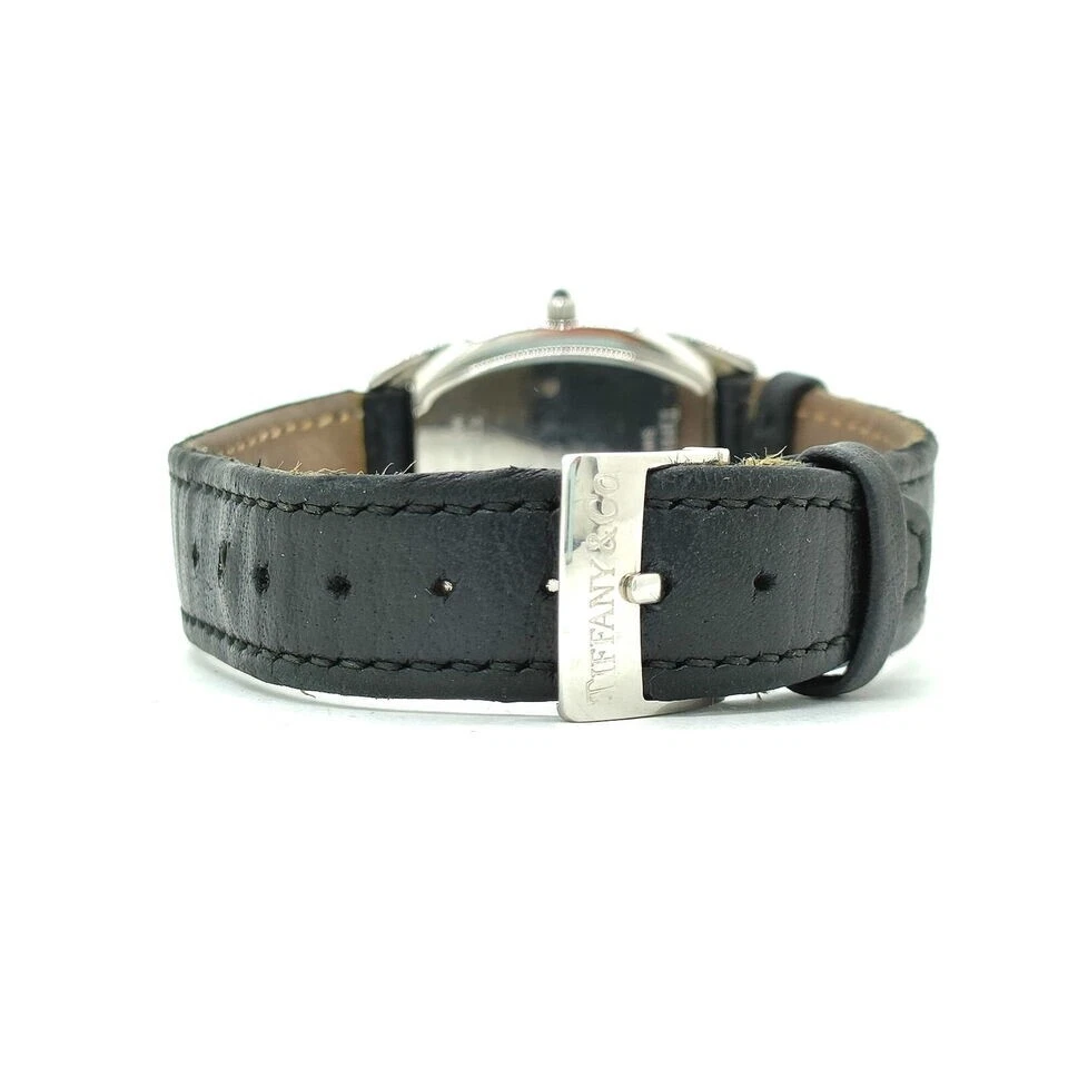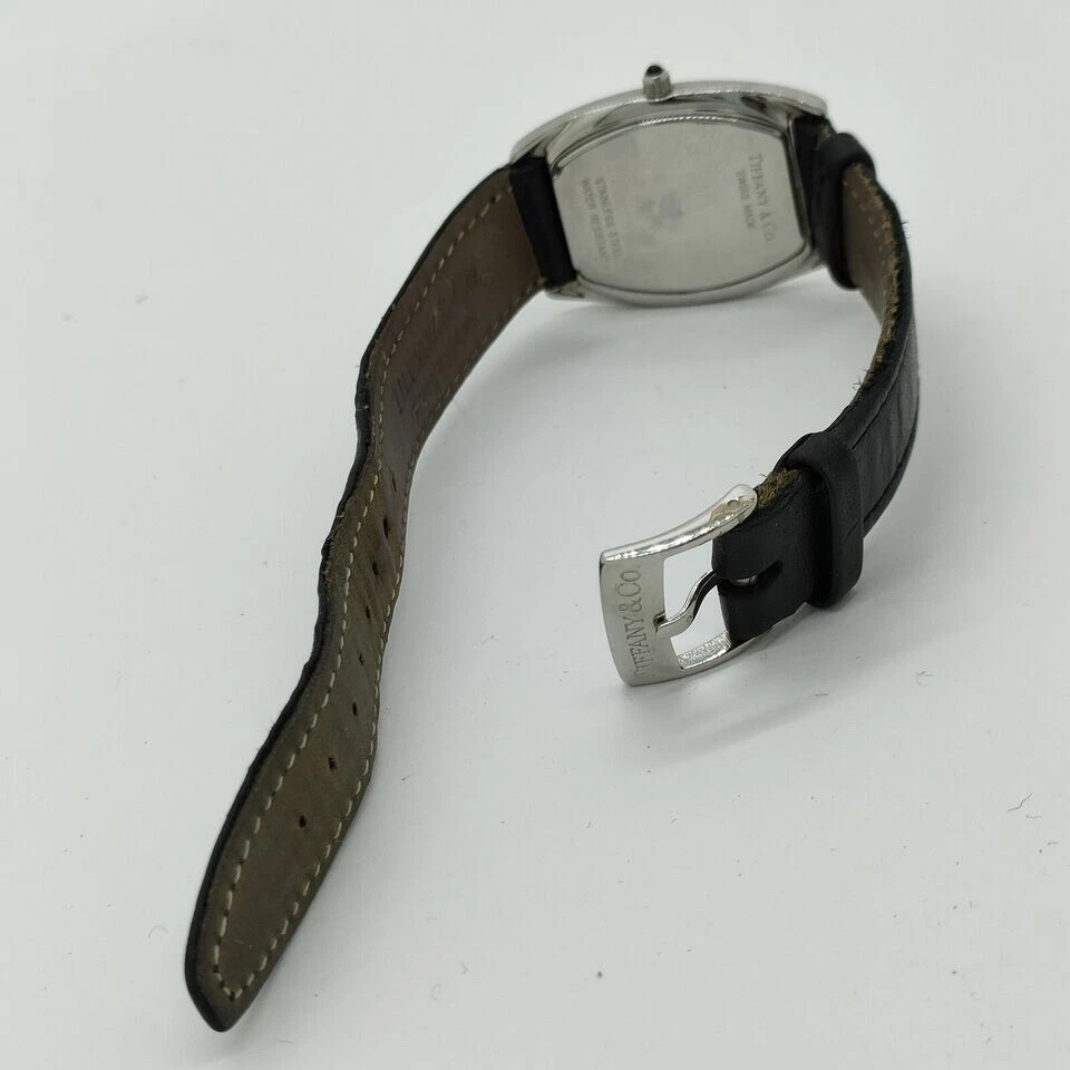 Elegance Preserved in Time: A Classic Swiss Women’s Watch For the woman who appreciates subtle charm and enduring quality, this watch tells a story of sophistication with every glance. Though it bears minor signs of love and wear, these only add to its timeless appeal, preserving its history while continuing to elevate any ensemble. Brand Tiffany & Co • Condition : Good, with minor rubs on the case, band, and back, reflecting gentle wear • Case Material : Crafted from resilient stainless steel, showcasing a classic sheen • Band Material :black leather, Shows wear, • Case Size : 27mm • Lug Width : 15mm • Gender : Women • Watch Shape : Tonneau/Barrel, creating a unique silhouette that’s both modern and vintage-inspired • Display : Analog, embodying classic timekeeping charm • Movement : Powered by reliable quartz (battery) movement for precision • Water Resistance : 30 meters (3 ATM), ideal for everyday wear with light water exposure • Face Color : Clean, classic white that enhances readability and pairs beautifully with any outfit • Band Color : Black leather • Wrist Size : Accommodates wrists up to 7.87 inches (approx. 200mm), ensuring a comfortable fit • Country of Manufacture : Swiss • Included Accessories : Original box, preserving its heritage and adding to its collectible value Embrace the charm of a watch that captures both past elegance and present sophistication, designed to be cherished for years to come.
