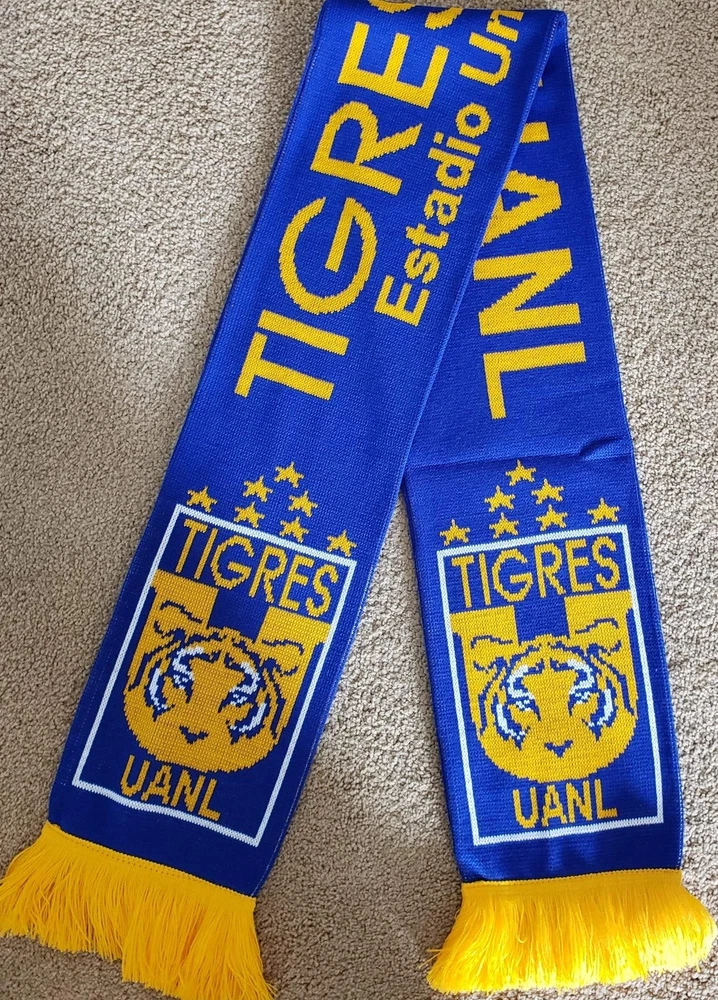 Description Pledge your allegiance to the PUMAS with this classic scarf! This authentic scarf features the classic PUMAS UNAM team colors of blue and gold with white trim and mock team crest at each end. The scarf features a bold PUMAS print on both sides, it measures over 60" long x 6" wide with fringes at both ends. Made of 100% Acrylic Knit and produced in the original scarf factory in Europe. A must-have accessory for every PUMAS UNAM fan and a great gift idea! Authentic Fan Scarf featuring Classic Pumas UNAM Team Colors of Blue and Gold Bold PUMAS Team Name and Mock Logo Print on both sides Soft, warm 100% Acrylic Knit Over 5 feet Long with Soft fringes at either end Imported | Made in the Original "Football Scarf" Factories in the UK