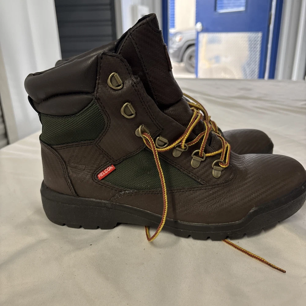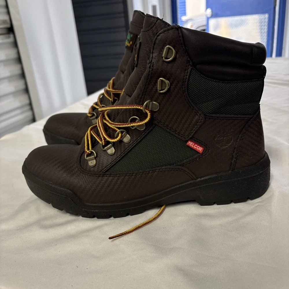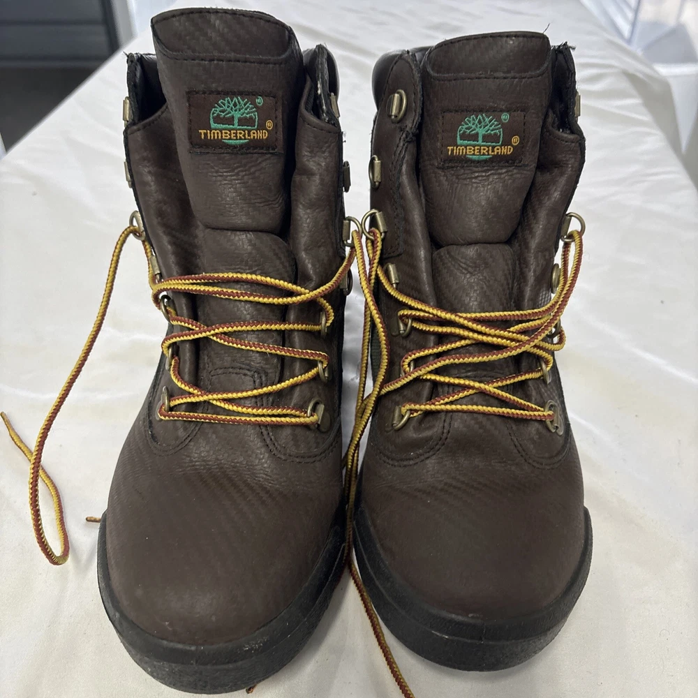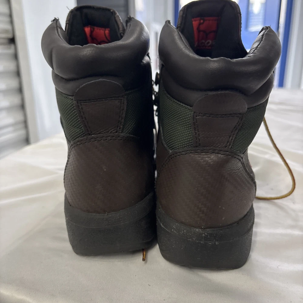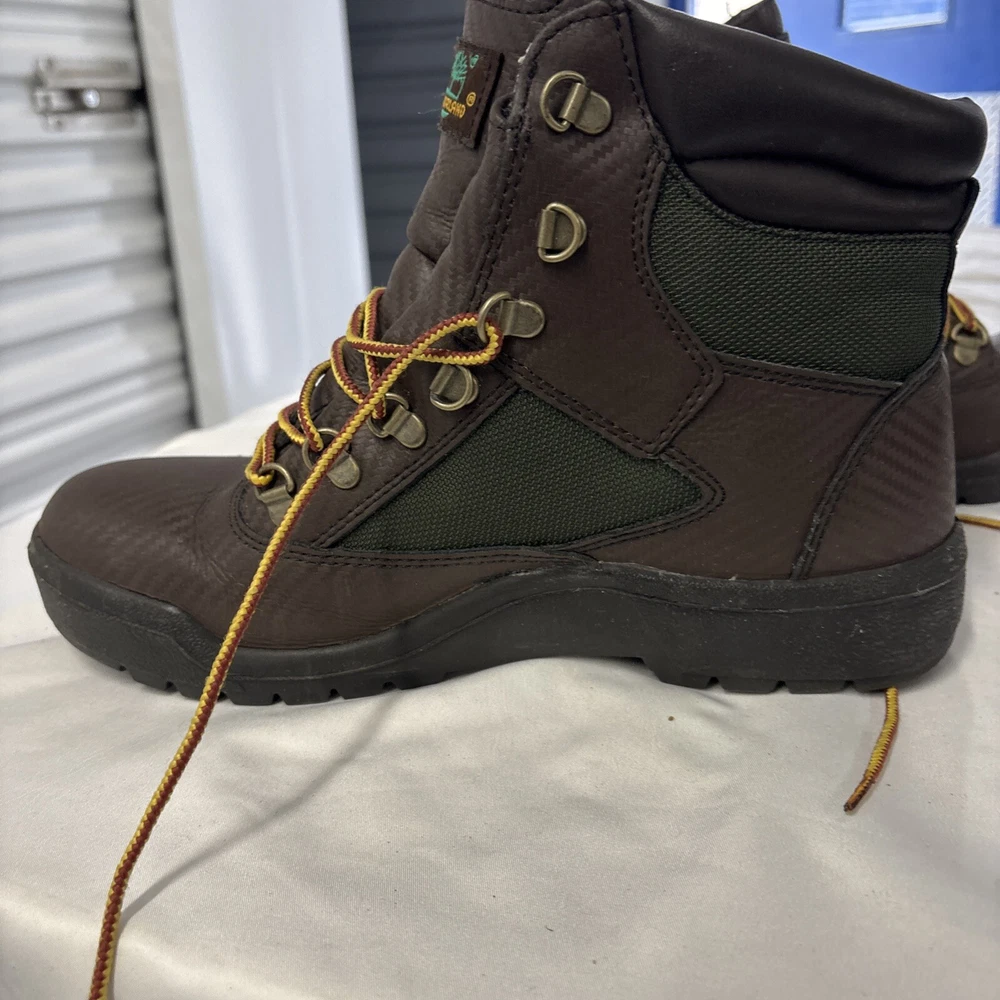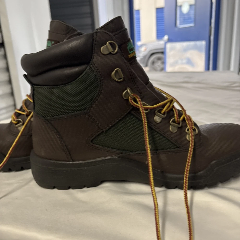 Elevate your style with these Timberland 6" Waterproof Leather Field Boots. These ankle-length boots come in a classic brown olive color and feature a closed-toe design with lace-up closure. The boots are made of nubuck leather and have a waterproof feature that makes them perfect for winter and spring. These boots are versatile and can be worn for various occasions, including travel, casual wear, formal events, workwear, and business meetings. The boots have a combat style and are perfect for outdoor activities. The Timberland brand is known for producing high-quality shoes, and these boots are no exception. Get a pair of these boots today and experience the comfort and durability that they provide.