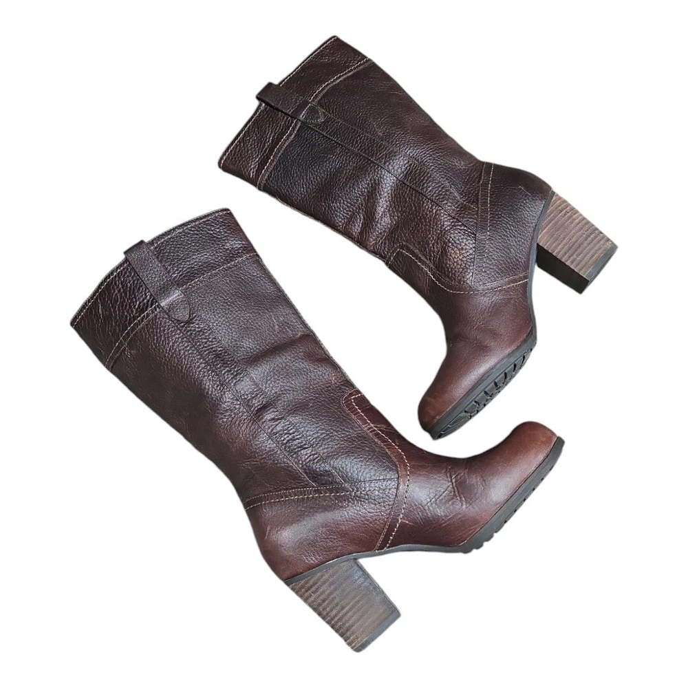 Elevate your riding style with these Timberland Rudston Women's Brown Leather Mid-Calf Pull-on Boots. Crafted from premium quality leather, these boots are designed to provide comfort and durability. The pull-on closure ensures an easy and hassle-free wear, making it a perfect choice for busy women. The boots come in a stylish brown color and feature a mid-calf shaft style, making it perfect for any occasion. The Timberland brand ensures you get the best quality product, and the model Rudston is designed to provide maximum support and comfort. These boots are perfect for women who want to look fashionable while still being comfortable.