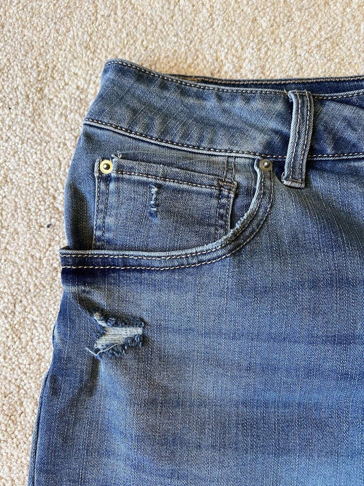 SHORTS DESCRIPTION : MADE BY : Time and Tru SIZE : 16 COLOR : Medium denim blue DESCRIPTION : Denim Shorts - 5 pocket style - button/zip closure - cuffed - distressed - mid-rise MATERIAL : Cotton / Polyester / Spandex CONDITION : Excellent used condition! PAYMENT : Payment is due within 3 days of the end of the auction. SHIPPING : Shipping is via US Post Office ONLY. RETURN POLICY : I list items to the best of my ability and try to describe each item as best as possible. Most of the items I sell are purchased at thrift shops/garage sales/etc, therefore I do not know the history to each item. Unless stated new, they are pre-owned items. I cannot guarantee items I sell are from smoke/pet free homes originally. My home is smoke free, however, I do have pets. Because computer monitors and phone screens vary in their ability to display color, color of the actual item may vary slightly. Color is not an acceptable reason for return. Items may be returned for a refund of bid price only (I will not refund any postage). Refunds will be issued once I receive the item back in the same condition as it left. If you have any problems please email me before leaving feedback. Please check out my other items - I will gladly combine shipping! Email me if you have any questions.