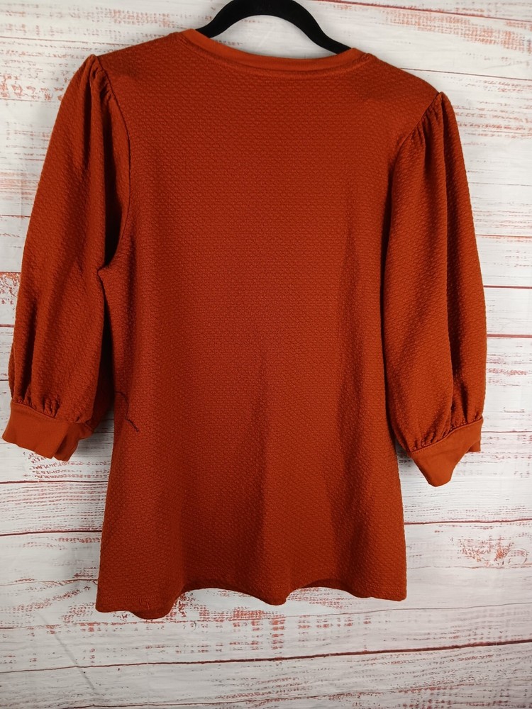 This Time and Tru blouse is a must-have for any woman's wardrobe. The V-neckline and 3/4 sleeves make it a stylish and comfortable choice for any occasion. The pullover closure and solid pattern make it easy to wear and match with any outfit. Made of a blend of polyester, spandex, and cotton, this blouse is both durable and machine washable for easy care. The brown color and regular fit add to its versatility and appeal. This blouse is perfect for any woman looking for a basic, yet stylish top to add to their collection.