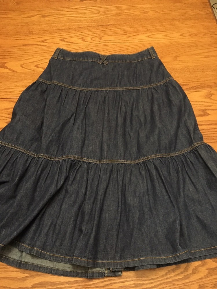 This beautiful Time and Tru denim maxi skirt in size 10 features button closure, mid-rise, and tiered design. It comes with pockets and is made of 100% cotton, making it machine washable for your convenience. The blue color adds a touch of elegance to the skirt, while the denim fabric type offers both durability and comfort. This skirt is perfect for any season, be it winter, summer, fall, or spring. The skirt length is long, making it ideal for formal and casual occasions. The brand, Time and Tru, is known for its quality products, and this skirt is no exception. Get yourself this stunning skirt today and enjoy the comfort and style it brings. Hip to hip 16.5" Top of waist to bottom hem 30" Please see all photos. Contact seller for any questions.