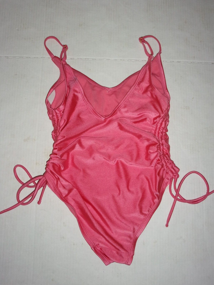 DESCRIPTION Time and Tru one piece swimsuit ruched sides removable padding coral small (4-6)