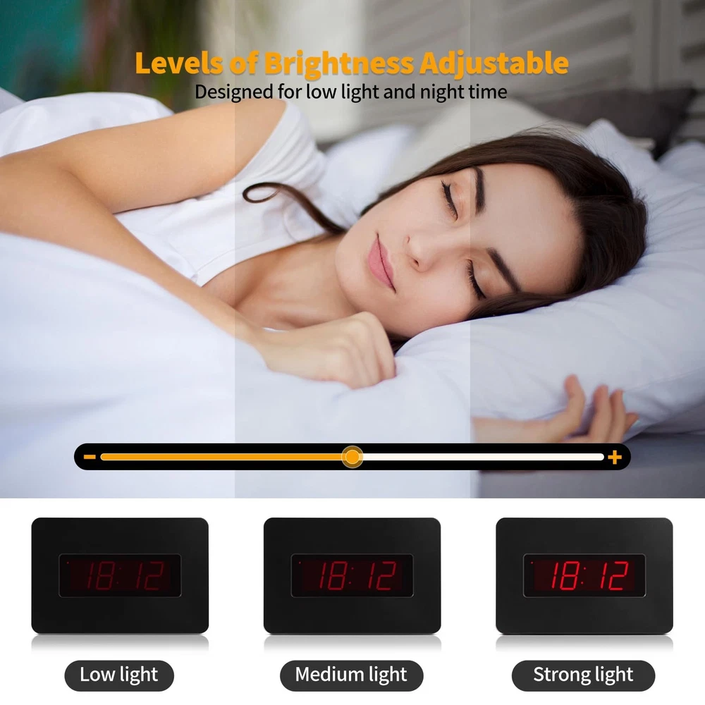 【Digital Wall Clock Battery Operated】This LED wall clock is powered by 4xAA battery only, no need to plug, very convenient to use in daily life. Our advanced and unique technology can keep the battery life up to one year. 【Wall Clock with Backlight】The large led time display can let you see the time clearly and check the time in the dark without any operation. There is no LCD display for this clock, and the LED could stay lit when battery is powered. 【Brightness Adjustable】This digital clock has 3 brightness levels optional and it will enter into night mode during 8:00pm~6:00am automatically by dimming to the lowest brightness. 【Wall Clock or Table Clock】There are two ways of placing the clock. It could be used as a wall mount clock with hanging hole on back, and also as a desk with the foldable shelves. 【Alarm Optional, 12/24Hr Mode】The clock has an alarm optional according to your need. And it has two time modes selectable: 12Hr(Standard) and 24Hr(Military).