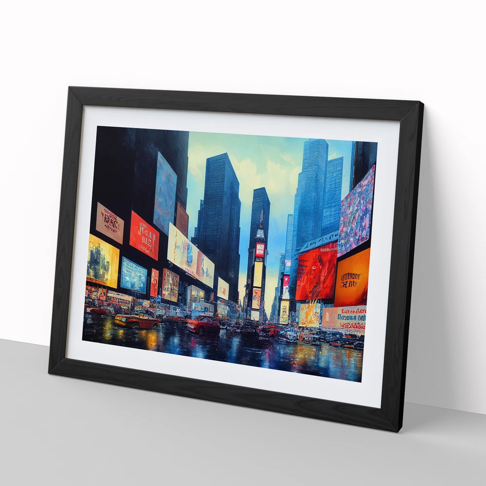 Transform your living space with our captivating framed wall art prints. Crafted in the UK, the stunning Times Square New York Watercolour Vol.6 framed print is designed to elevate your home decor. We utilise high-quality inks to ensure the colours of the artwork are rich, vibrant, and true to life. The print seamlessly fits within a contemporary frame, creating a stylish wall art picture that is ready to hang in your living room, lounge, bedroom, dining room and home office. Visit Our Shop eBay Message Framed Art Print Enhance your living space and showcase your individual style with our framed prints. Each design is printed upon premium art paper with fade-resistant inks, ensuring the colours remain rich and vibrant for years to come. The print is encased in a ready-to-hang frame, offered in black, oak, or walnut, and safeguarded by shatter-resistant Perspex. An ideal addition to your home, and the perfect gift choice. Like what you see? Visit our eBay store to see more. Premium Quality : The design is printed on quality art paper, enhanced with fade-resistant colours. Ready to Hang : The frame is pre-fitted with hanging hardware, making wall mounting simple, safe and secure. Frame Dimensions : A4 - 25 x 34 cm / A3 - 34 x 46 cm / A2 - 46 x 64 cm. Fast Shipping : Prompt, reliable UK-based dispatch. Customer Satisfaction : Our priority is your satisfaction which is why we offer a hassle-free return policy. Payment You can pay for your order safely and securely via credit or debit card, Apple Pay, Google Pay, and PayPal. Shipping Production times are 1 to 2 working days. Orders are sent via Royal Mail or Evri (depending on size). Returns For your peace of mind, we have a 30-day returns policy in place. Please, contact us for more details. At Big Box Art, we are dedicated to providing high-quality wall art and decorative homeware items. From the outset, we've focused on excellence in our products, service, and reputation, continually enhancing our standards. With an extensive selection of designs, you're certain to discover the perfect piece to suit your taste. ? Copyright 2021, Big Box Art. All rights reserved. Made with by eBayshopdesign.org