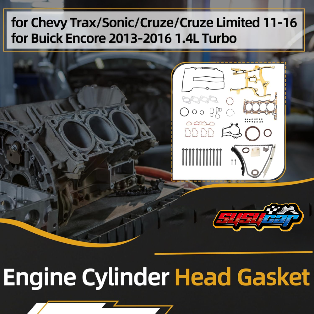 Type: Timing Chain Kit with Head Gasket Kit Items Included: Cylinder Head Gasket Set, Cylinder Head Bolt,Timing Chain Kit Compatible Engine: 1.4L 1364CC 83Cu. In. l4 GAS DOHC Turbocharged Fitment Type: Direct Replacement Brand: susucar Compatible Models: Encore ,Trax/Sonic/Cruze/Cruze Limited Manufacturer: SUSUCARpartsWhosale Manufacturer Warranty: 2 Years OE Spec or Performance/Custom: OE Spec About My Store: 100% SATISFACTION, 100% Source manufacturer Interchange Part Number: TK343, 22HP47N, ETCK2102 Compatible Makes: Buick , Chevrolet Note: Please contact us to confirm the application before Purchase Compatible Years: 2011-2016 OE/OEM Part Number: HSCV001, HS54898, HS31411, HS26540PT-1, ES72474 Material: Steel/Aluminum/Plastic