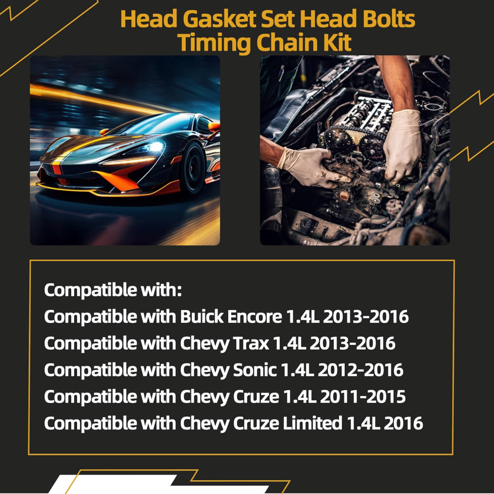 Timing Chain Kit with Head Gaskets & Bolts for 11-16 Chevy Buick 1.4L Turbo