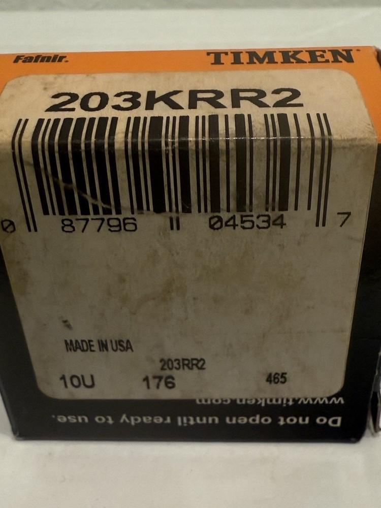 (pcp) New Timken 203KRR2 Deep Groove Bearing, 16.25mm ID, 40mm OD, 12mm Width. Listing is for 1 piece, new from excess inventory. Price includes FREE SHIPPING!!