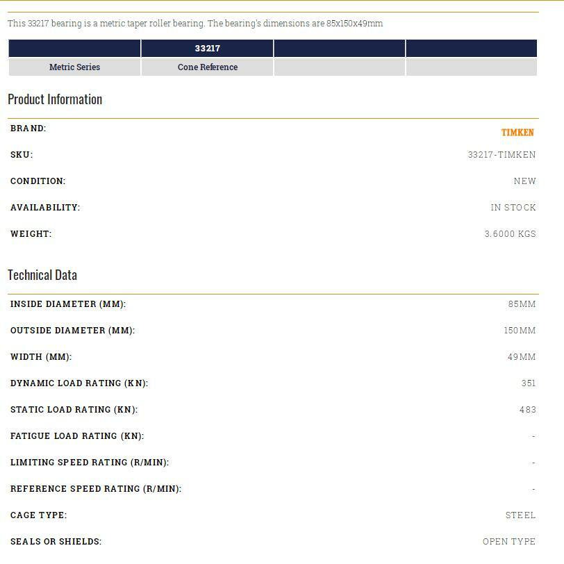 $ 33.22Timken 33015 Taper Roller Bearing 75x115x31mm Single Piece NN