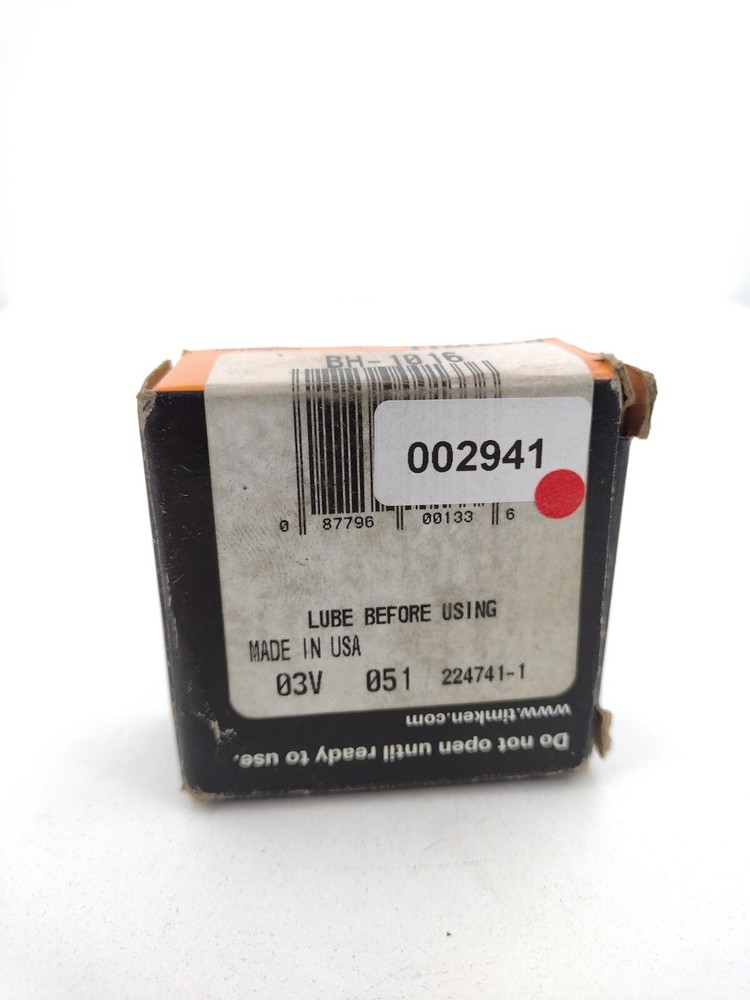 Timken BH 1016 Drawn Cup Needle Roller Bearing Made in USA Condition: New / New Open Box. New Old Stock. Specifications: Needle Bearing - Drawn Cup - Full Complement Dimensions: 0.625" x 0.8745" x 1" Common Interchanges BH1016 OH SH1016 INA YB1016 IKO BH1016 DOA Guaranty : At Seller option, replacement or money back. Return Shipping, if requested by Seller, paid by Seller. If Seller elects to not have the item returned Buyer is responsible for disposal. Warranty : 30 day exchange warranty from date of Buyer receives delivery, only if installation is certified by a certified installer. Note To Buyers : WE HAVE MANY OTHER BEARINGS AND OTHER ITEMS IN STOCK THAT HAVE NOT BEEN INVENTORIED. PLEASE CONTACT US IF YOU CAN'T FIND THE ITEMS YOU NEED. Please request any additional information and/or pictures before purchasing. Fine Print: The item being purchased is guaranteed to be as advertised. Pictures provided are of the actual item being sold unless otherwise identified. We have no affiliations with manufacturers. Buyer is responsible for determining the viability of items purchased for the uses intended. Items are being sold ‘As-Is, Where-Is’. Shipping is being provided as a convenience, and the seller does not guarantee shipping once the item is picked up from the seller's location. Seller will endeavor to ensure and work with the buyer on timely delivery. Many items are available to be picked up locally. manufacturer warranties may be available, and if the buyer needs a warranty, buyer should confirm applicable warranty with the manufacturer or whomever prior to purchase. Buyer agrees in no event shall the seller, seller’s company, seller ownership entity(ies), associates or affiliates are liable for any direct, indirect, punitive, incidental, special consequential damages, to property or life, or other damages whatsoever arising out of or connected with the use or misuse of products purchased. Buyer agrees purchased items will not be used in applications where life can be endangered or harmed. (5/17/23 12:37 PM) PROPOSITION 65 WARNING : ⚠ WARNING: This product can expose you to chemicals including arsenic, which is known to the State of California to cause cancer. For more information, go to www.P65Warnings.ca.gov. International Buyers: Please note: import duties, taxes and charges are not included in the item price or shipping charges. These charges are the buyer's responsibility. Please check with your country's customs office to determine what these additional costs will be prior to bidding/buying. These charges are normally collected by the delivering freight (shipping) company or when you pick the item up – do not confuse them for additional shipping charges. We do not mark merchandise values below value or mark items as "gifts" - US and International government regulations prohibit such practices. (6/27/2023)