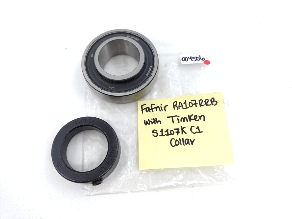 Fafnir RA107RRB Ball Insert Bearing with Timken S1107K Collar 1-7/16 inch Bore Made in USA Condition: New / New Open Box. New Old Stock. Specifications: Bore Type Cylindrical Bore Diameter 1-7/16 in Outside Diameter 72 mm Internal Clearance C0 Overall Width 1.0000 in Outer Ring Width 19 mm Duty Type Medium Duty Inner Ring Width 25.4 mm Locking Device Eccentric Collar Radial Dynamic Load Capacity 6400 lbf Radial Static Load Capacity 3050 lbf Cage Material Nylon Snap Ring Included Without Snap Ring Finish Coating Uncoated Max Rpm 3270 rpm Series RA-RRB UPC_NO 087796053670 DOA Guaranty : At Seller's option, DOA item(s) can be replaced or purchase price(s) refunded. Return shipping, if requested by Seller, is paid by Seller. If Seller elects to not have the item(s) returned, Buyer is responsible for disposal. All items are sold "As-Is, Where-Is." Please contact Pristine Sales within 72 hours if (a) purchased item(s) arrive(s) D.O.A. (Dead On Arrival). If D.O.A. status is the result of shipping, the Buyer must make a claim with the shipping agent. At Seller's option, D.O.A. item(s) will be replaced or the purchase price(s) refunded. If the Seller requests a return, the Seller pays return shipping. If the Seller doesn't want the D.O.A. item(s) returned, the Buyer is responsible for item disposal. Warranty : 30 day warranty begins from the date Buyer receives delivery. All items are sold "As-Is, Where-Is." All installations must be done by a Pristine Sales-approved, manufacturer-certified installer. At request of Seller, Buyer will provide documentation of analysis of any warranty-related issues. Returns : All sales are final, excepting the aforementioned D.O.A. and Warranty policies Please request any additional information and/or pictures before purchasing. Fine Print: The photos in this listing are representative of the item being sold but the item pictured may not be the actual item shipped to the buyer. Because of the nature of our business as an industrial reseller, Pristine Sales often has multiple units of the same product in stock with some variances in package style and/or package condition. Pristine Sales does guarantee that the actual item shipped will be as described in the listing. If a prospective buyer is concerned about this, they should first check the quantity in a given listing. If the quantity listed is "1" then what you see is what you get. Each listing description describes the part's condition, not the packaging. Packaging may vary item to item. We have no affiliations with manufacturers. Buyer is responsible for determining the viability of items purchased for the uses intended. Pristine Sales guarantees the accuracy of the item title on the listing and that it matches the part in the listing photos. Any other details about the item are listed as a courtesy. Buyers should check and confirm any measurements and other details listed in the item's details to ensure that the part being purchased is the part the Buyer wants. Items are being sold "As-Is, Where-Is". Shipping is being provided as a convenience, and the seller does not guarantee shipping once the item is picked up from the seller's location. Seller will endeavor to ensure and work with the buyer on timely delivery. Many items are available to be picked up locally. Manufacturer warranties may be available, and if the buyer needs a warranty, buyer should confirm applicable warranty with the manufacturer or whomever prior to purchase. Buyer agrees in no event shall the seller, seller's company, seller ownership entity(ies), associates or affiliates are liable for any direct, indirect, punitive, incidental, special consequential damages, to property or life, or other damages whatsoever arising out of or connected with the use or misuse of products purchased. Buyer agrees purchased items will not be used in applications where life can be endangered or harmed. (12/06/23) PROPOSITION 65 WARNING : WARNING: This product can expose you to chemicals including arsenic, which is known to the State of California to cause cancer. For more information, go to www.P65Warnings.ca.gov. International Buyers: Please note: import duties, taxes and charges are not included in the item price or shipping charges. These charges are the buyer's responsibility. Please check with your country's customs office to determine what these additional costs will be prior to bidding/buying. These charges are normally collected by the delivering freight (shipping) company or when you pick the item up, do not confuse them for additional shipping charges. We do not mark merchandise values below value or mark items as "gifts" - US and International government regulations prohibit such practices. (6/27/2023)